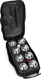 Odkryj grę towarzyską dla wszystkich pokoleń. Pétanque możesz grać w ogrodzie, parku, na plaży i na wakacjach – bez specjalnego przygotowania boiska. Celem jest rzucanie kul tak, aby wylądowały jak najbliżej małej drewnianej kulki – jacka. Kompaktowe etui pozwala zabrać zestaw wszędzie ze sobą.