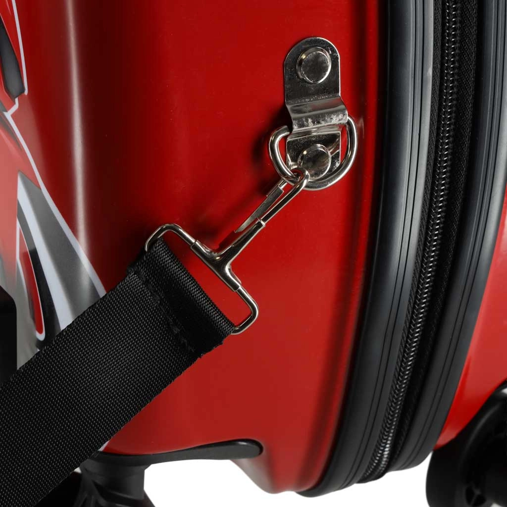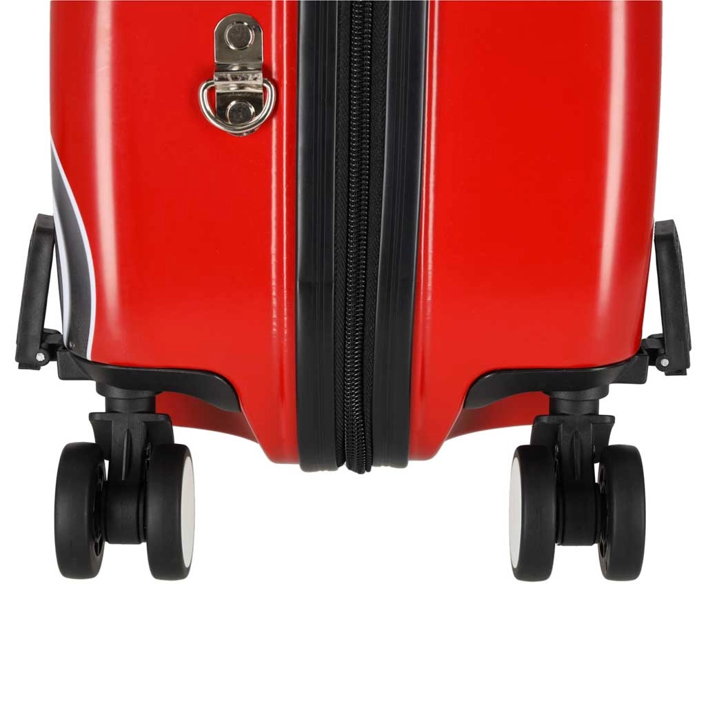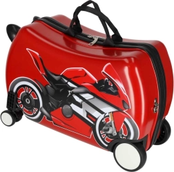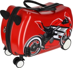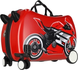 Dziecięca walizka na kółkach z motywem motocykla zamieni oczekiwanie na lotnisku i podróż w zabawę. Dziecko może wygodnie usiąść na walizce i dać się ciągnąć, a stabilne przednie rogi–uchwyty zwiększają pewny chwyt podczas jazdy. Sprytne połączenie dwóch tylnych kół stałych i dwóch przednich obrotowych 360° zapewnia stabilność i doskonałą sterowność.