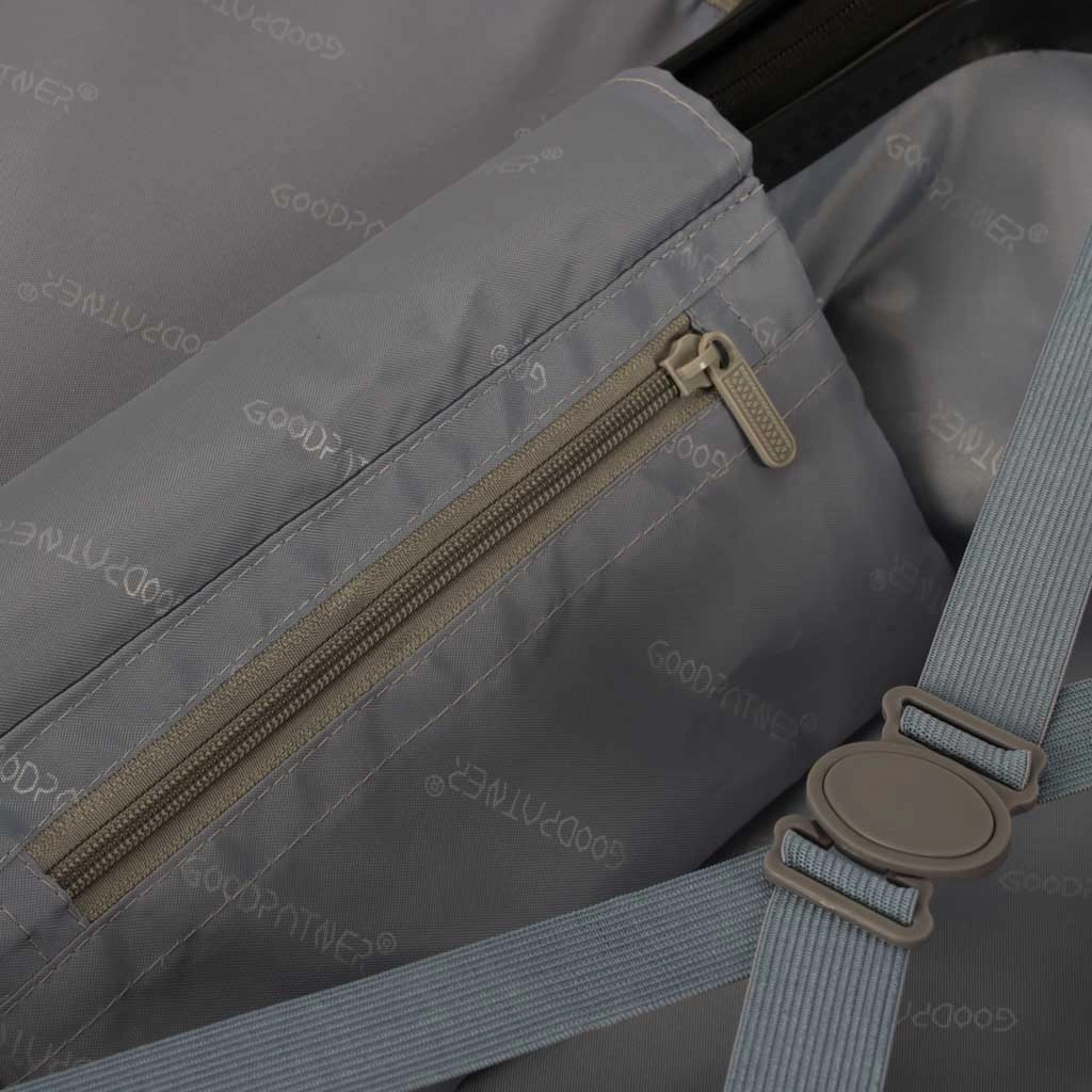 W środku znajdziesz przegrodę na zamek, krzyżowe pasy i kieszeń na zamek 25 × 11 cm. Wszystko ma swoje miejsce i pozostaje na miejscu.