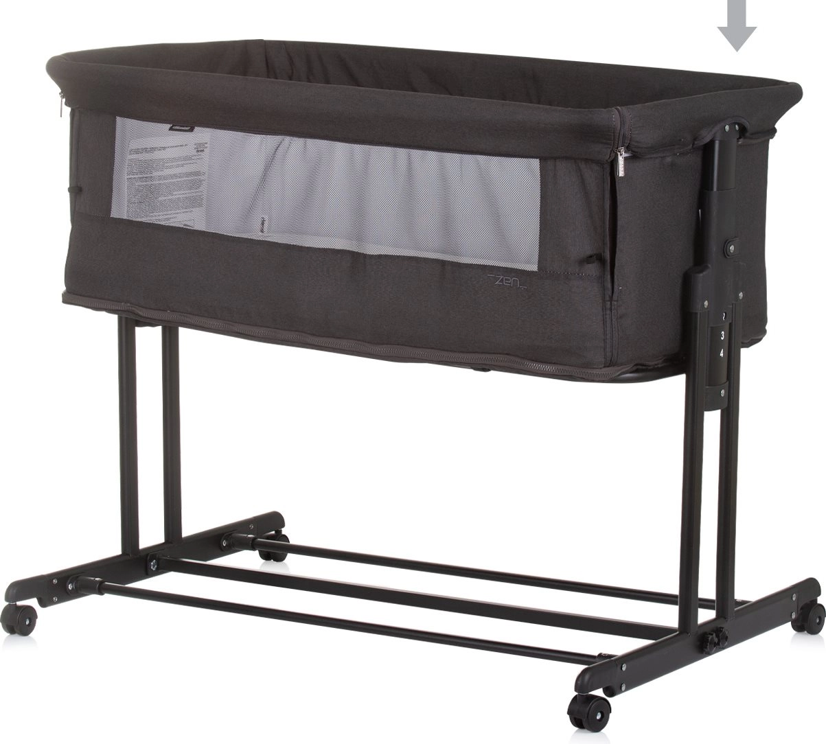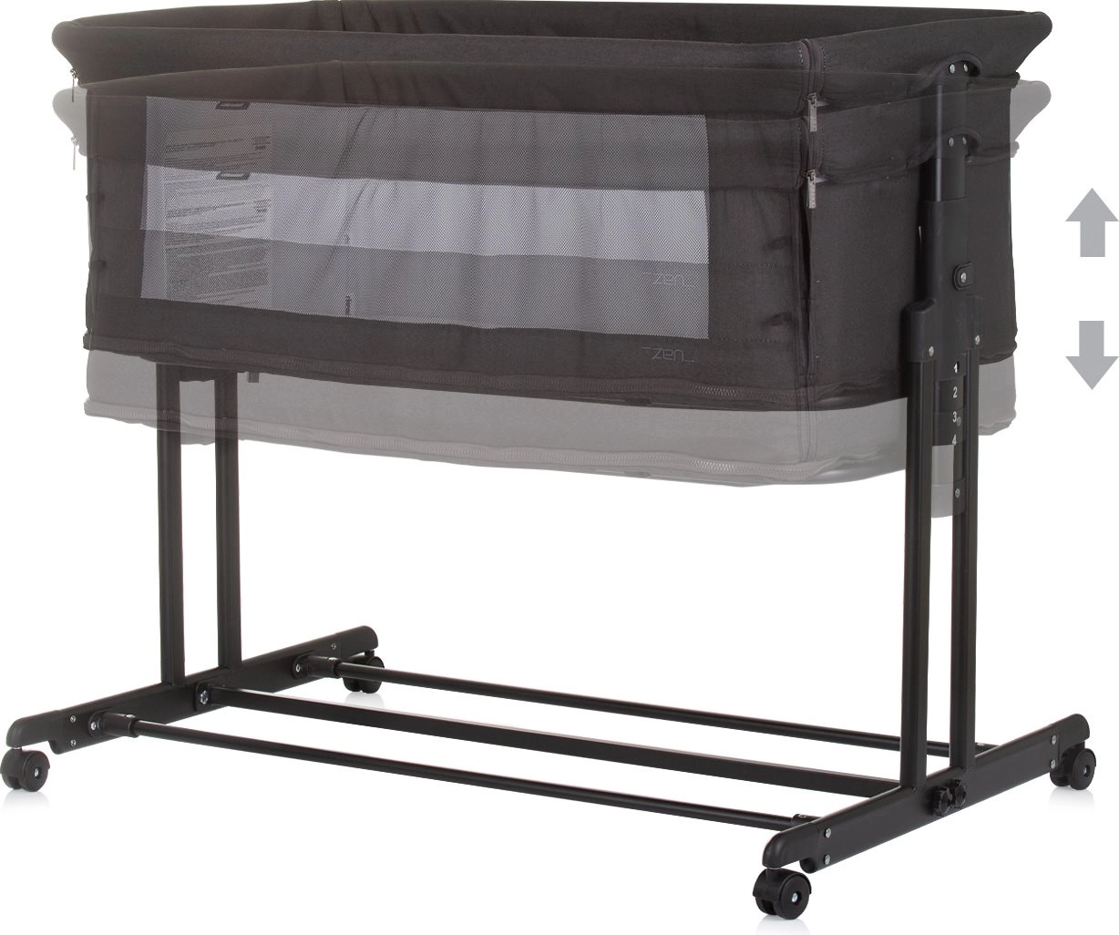CHIPOLINO Zen Obsidian to praktyczna dostawka i łóżeczko dla noworodków do 6 miesięcy (do 9 kg), które łatwo przekształcisz w kojec dla dzieci aż do 15 kg. Oddychające boczne ścianki z siateczki zapewniają cyrkulację powietrza i kontakt wzrokowy, a opuszczana długa ścianka pozwala mieć maluszka zawsze blisko.