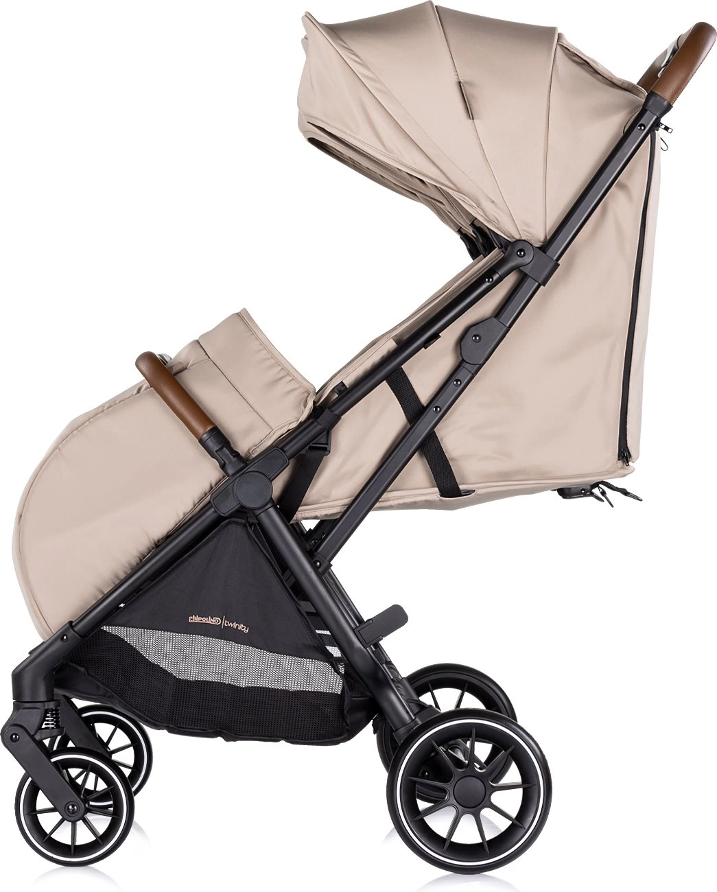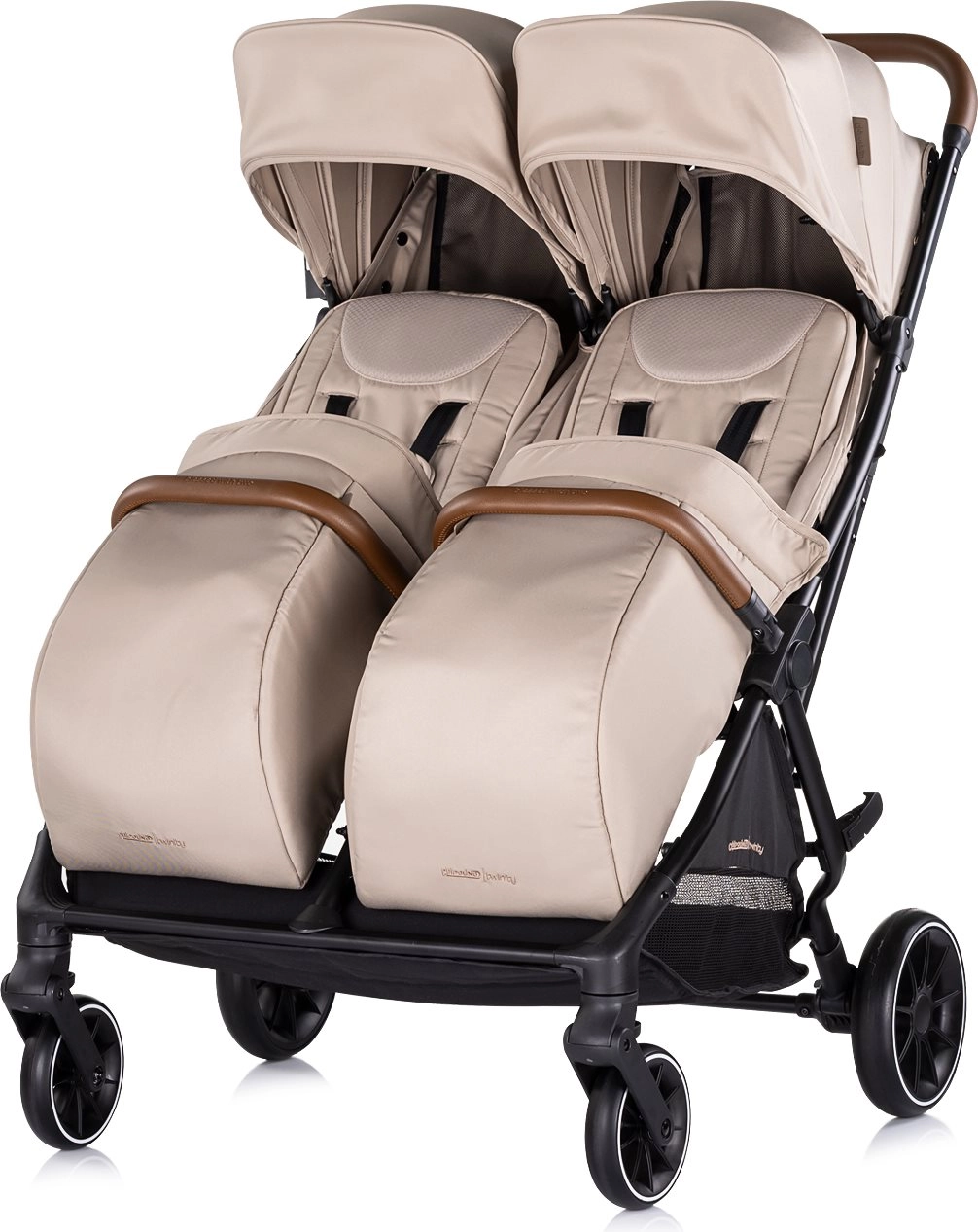 CHIPOLINO Twinity Tiramisu to niezawodny podwójny wózek spacerowy dla bliźniąt lub rodzeństwa. Dzięki lekkiej aluminiowej ramie i sprytnemu automatycznemu składaniu 3D złożysz go jedną ręką w kilka chwil. Dwa niezależnie regulowane oparcia i podnóżki zapewniają komfort każdemu dziecku z osobna, a szerokie budki z okienkiem i osłoną przeciwsłoneczną chronią przed pogodą.