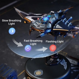 Dla jeszcze bardziej dynamicznego efektu dostępny jest tryb Burst Mode – szybkie miganie i przyspieszenie ruchu, które symuluje nagły sprint manty. Model stoi na stylowej podstawce, dzięki czemu świetnie sprawdzi się jako dekoracja designerska do salonu, gabinetu lub pokoju dziecięcego.