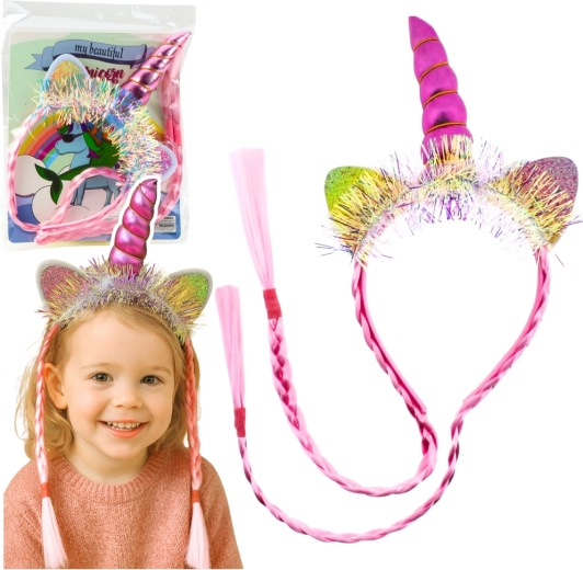 Magiczna różowa opaska w stylu jednorożca z rogiem, uszkami i długimi warkoczami jest idealna dla dzieci i dorosłych. Świetnie leży dzięki uniwersalnemu rozmiarowi, jest wygodna w noszeniu i doda każdej stylizacji magicznego wyglądu – na przyjęcia, sesje zdjęciowe, karnawał i codzienną zabawę.