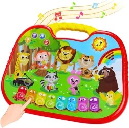 Interaktywna edukacyjna tablica ze zwierzętami to zabawna pomoc dla najmłodszych, łącząca naukę, muzykę i interakcję dotykową. Oferuje 4 tryby zabawy (językowy, muzyczny, pianinko, quiz), dźwięki zwierząt, melodie oraz panel dotykowy z podświetlanymi ikonami. Wspiera koordynację, słuch, pamięć i rozwój mowy, a dzięki przenośnej konstrukcji z uchwytem i stojakiem jest idealna w domu i w podróży.