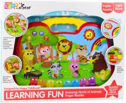 Odkryj sprytnie zaprojektowaną interaktywną tablicę, która w przystępny, zabawowy sposób wprowadza dzieci w świat zwierząt. Panel dotykowy reaguje na ruch palca, aktywując dźwięki zwierząt, melodie oraz komunikaty edukacyjne. Dzięki trybowi językowemu (angielski i hiszpański) poszerza słownictwo i wspiera rozumienie.