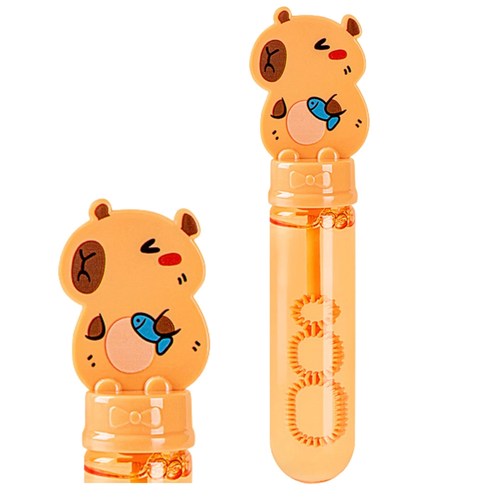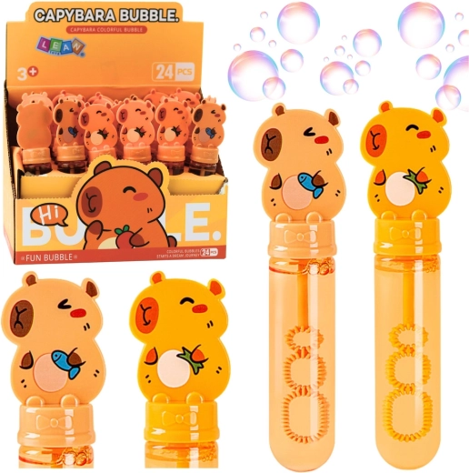 Urocze bańki mydlane z motywem kapibary o pojemności 35 ml sprawią radość małym i dużym. Dzięki potrójnemu kółku tworzą naraz mnóstwo baniek, a lekka, kompaktowa konstrukcja świetnie leży w dłoni także dzieciom. Idealne do zabawy na zewnątrz i w domu, na przyjęcia i gry na placu zabaw.