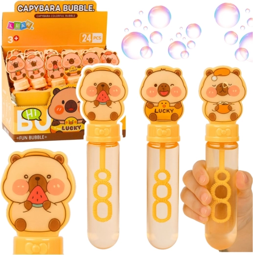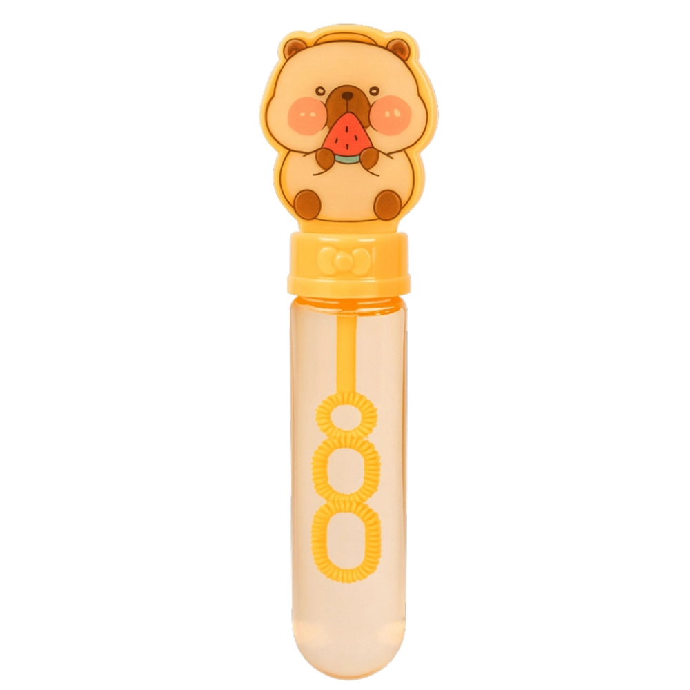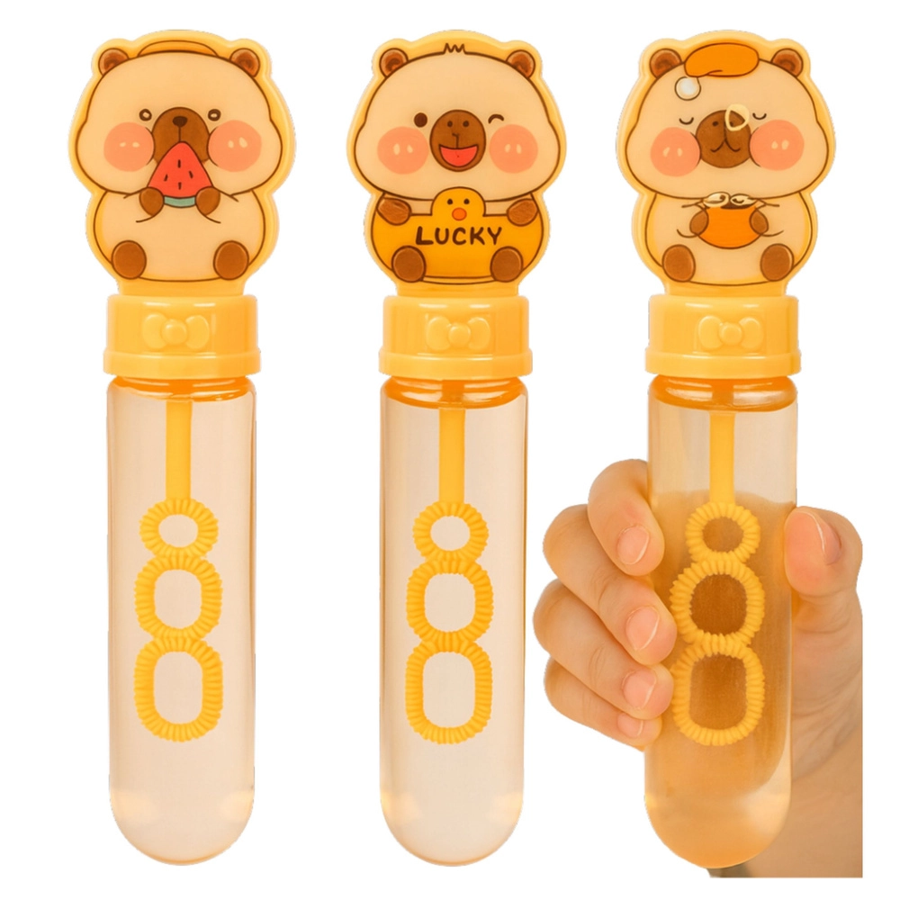 Uroczy bublifuk z motywem kapibary i pojemnością 35 ml zapewni dzieciom godziny zabawy w domu i na zewnątrz. Dzięki potrójnemu kółku stworzysz wiele dużych, kolorowych baniek jednym machnięciem. Lekka, łatwa do trzymania tubka z przezroczystym korpusem umożliwia kontrolę poziomu płynu – idealna do ogrodu, na plac zabaw i urodzinowe przyjęcia.