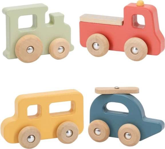 Zestaw drewnianych pojazdów VIGA PolarB oferuje 4 ulubione środki transportu w delikatnych pastelowych kolorach. Każdy element wykonano z naturalnego drewna, ma gładko zaokrąglone kształty i solidne kółka dla płynnej jazdy. Zabawa pojazdami rozwija wyobraźnię, uczy o transporcie oraz wspiera zabawę samodzielną i społeczną.