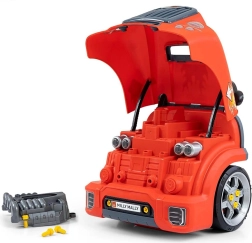 W zestawie znajduje się kierownica z klaksonem, schowek na narzędzia, odłączane kółeczka oraz naklejki do personalizacji. Zabawka rozwija małą motorykę, koordynację ręka–oko i cierpliwość. Konstrukcję zaprojektowano z naciskiem na bezpieczeństwo i zgodność z europejskimi normami.