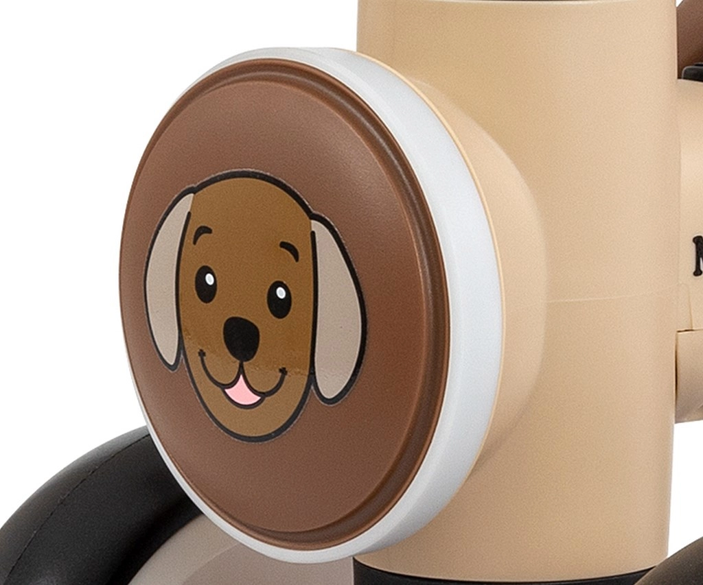 Rodzice docenią szybki montaż, solidną konstrukcję oraz maksymalny udźwig 25 kg. Przednie światło LED (na baterie) zwiększa widoczność i atrakcyjność, a melodie i odgłosy zwierząt zamieniają każdą jazdę w radosną przygodę.