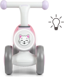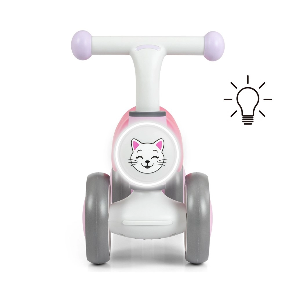 LekkI i stabilny jeździk dziecięcy MILLY MALLY YORK w kolorze różowym to idealny pierwszy pojazd dla maluchów. Dzięki czterokołowej konstrukcji i szerokim kołom z pianki EVA jazda jest bezpieczna i płynna także w pomieszczeniach. Jeździk oferuje lampkę LED, melodie i odgłosy zwierząt oraz wygodne miękkie siodełko na dłuższą zabawę. Odpowiedni od 12 miesięcy, z udźwigiem do 25 kg.