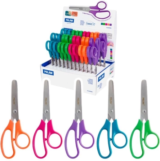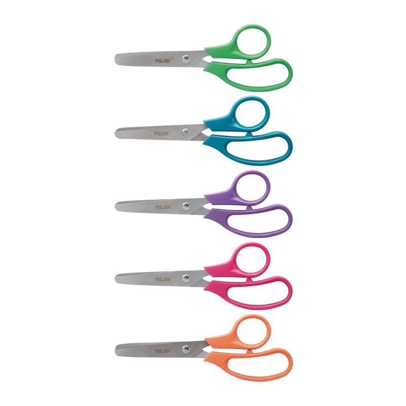 Dziecięce nożyczki MILAN Basic o długości 133 mm są zaprojektowane dla małych dziecięcych dłoni i bezpiecznego użytkowania. Mają zaokrąglone końcówki przeciw skaleczeniu, ergonomiczne plastikowe uchwyty dla wygodnego chwytu oraz stalowe ostrza do precyzyjnego cięcia papieru, kartonu i materiałów kreatywnych – idealne do szkoły i do tworzenia w domu.