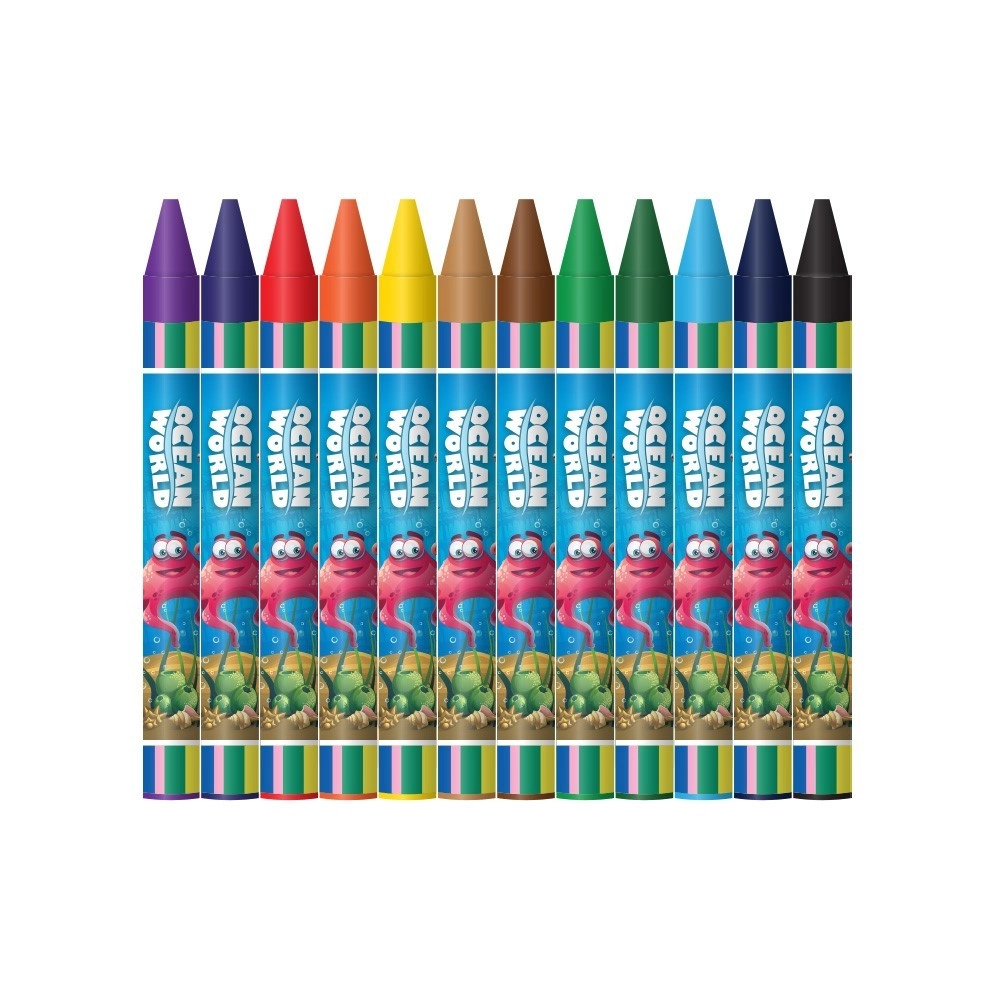 Odkryj barwny świat z kredkami woskowymi Ocean World – 12 szt. w bogatej palecie odcieni inspirowanych podwodnym światem. Kredki wygodnie leżą w dłoni, gładko suną po papierze i nie brudzą rąk ani otoczenia. Idealne do rysowania, kolorowania i kreatywnych projektów dla dzieci kochających motywy oceaniczne.