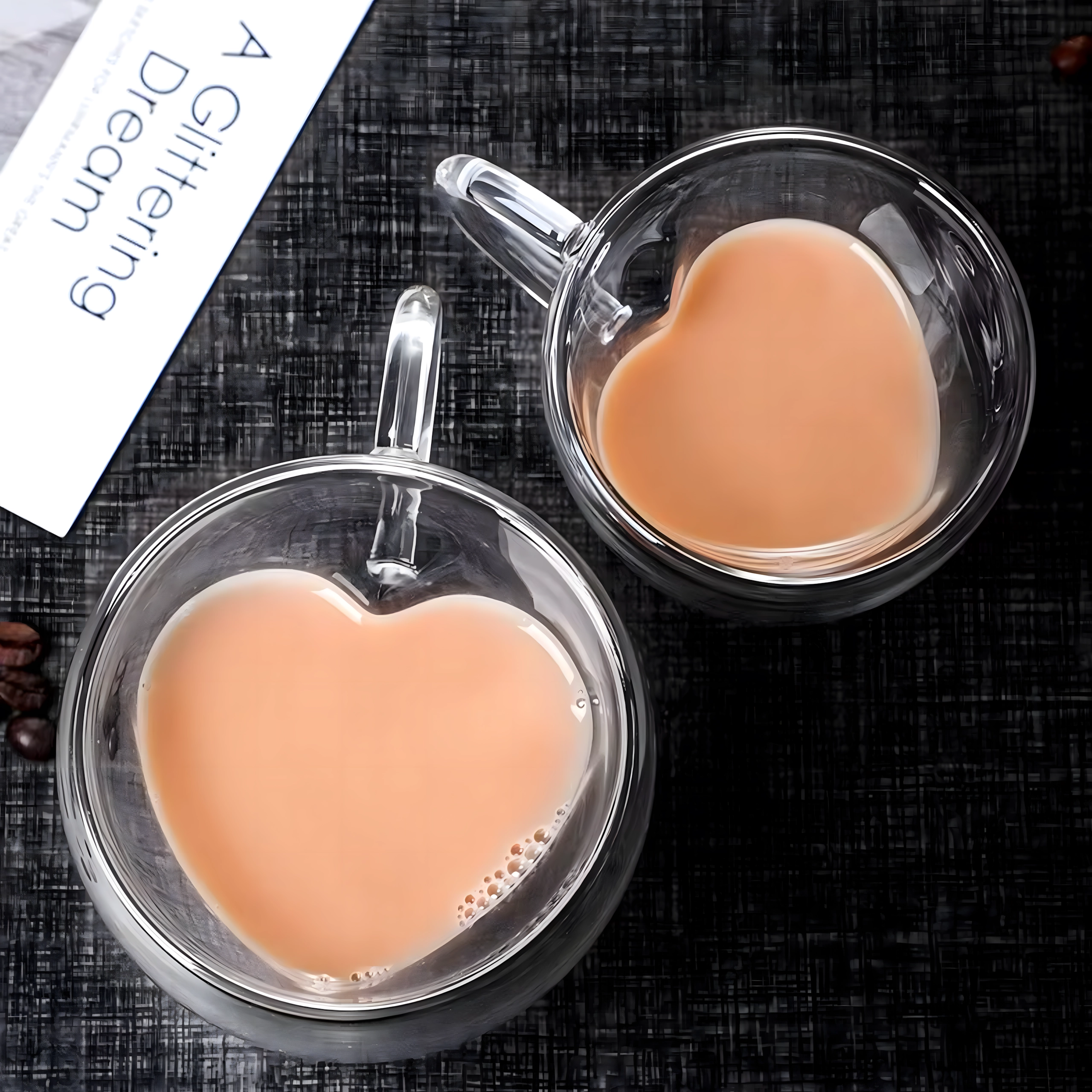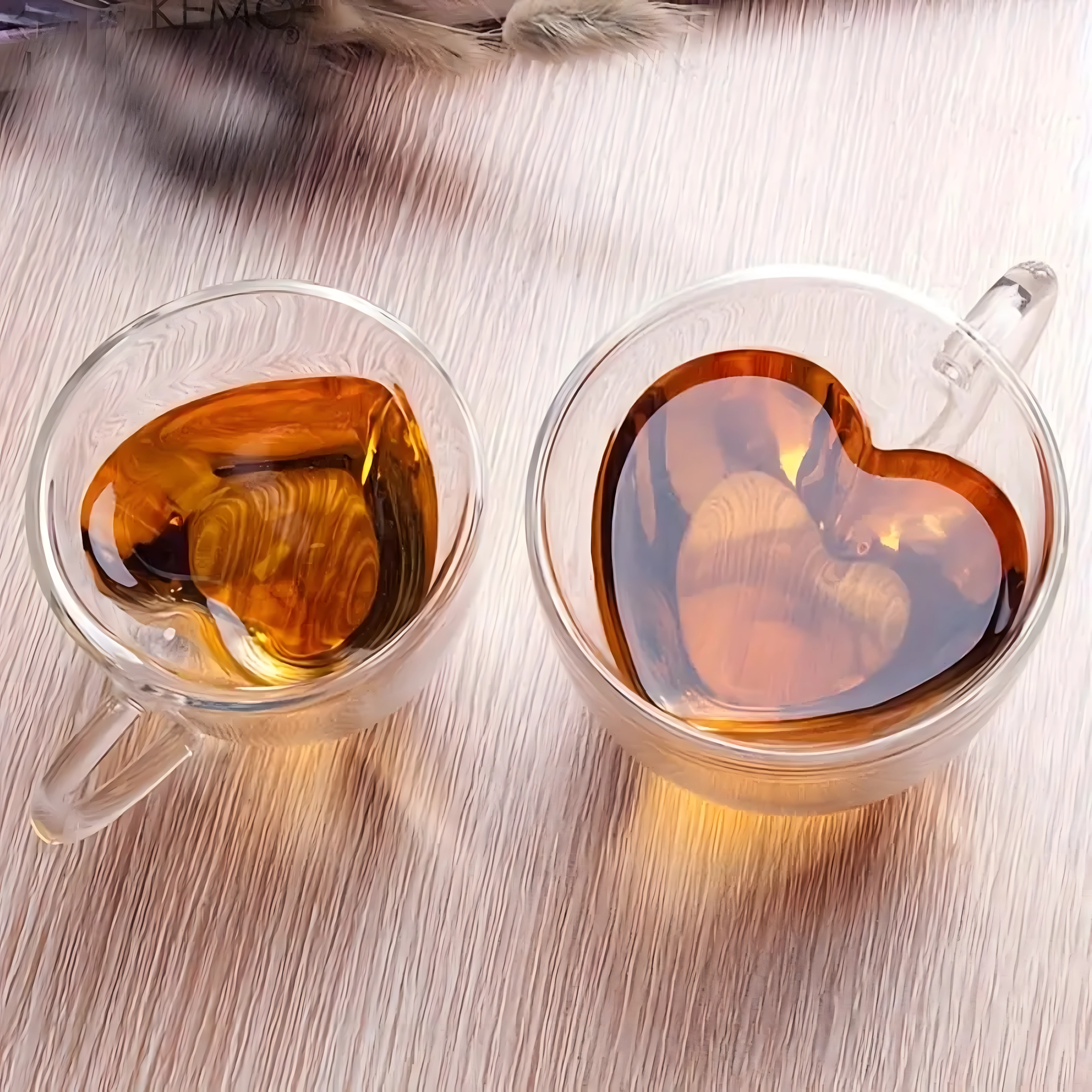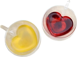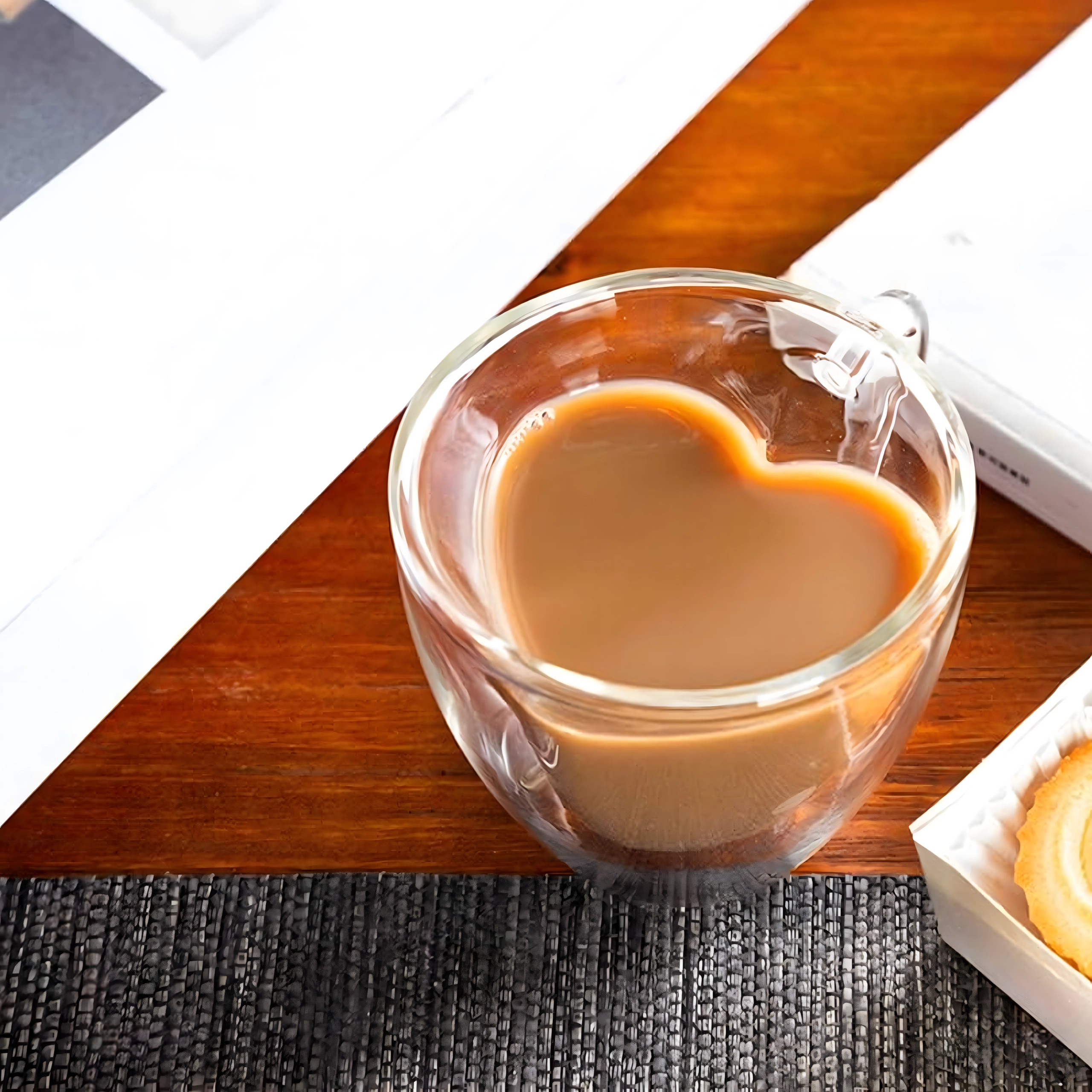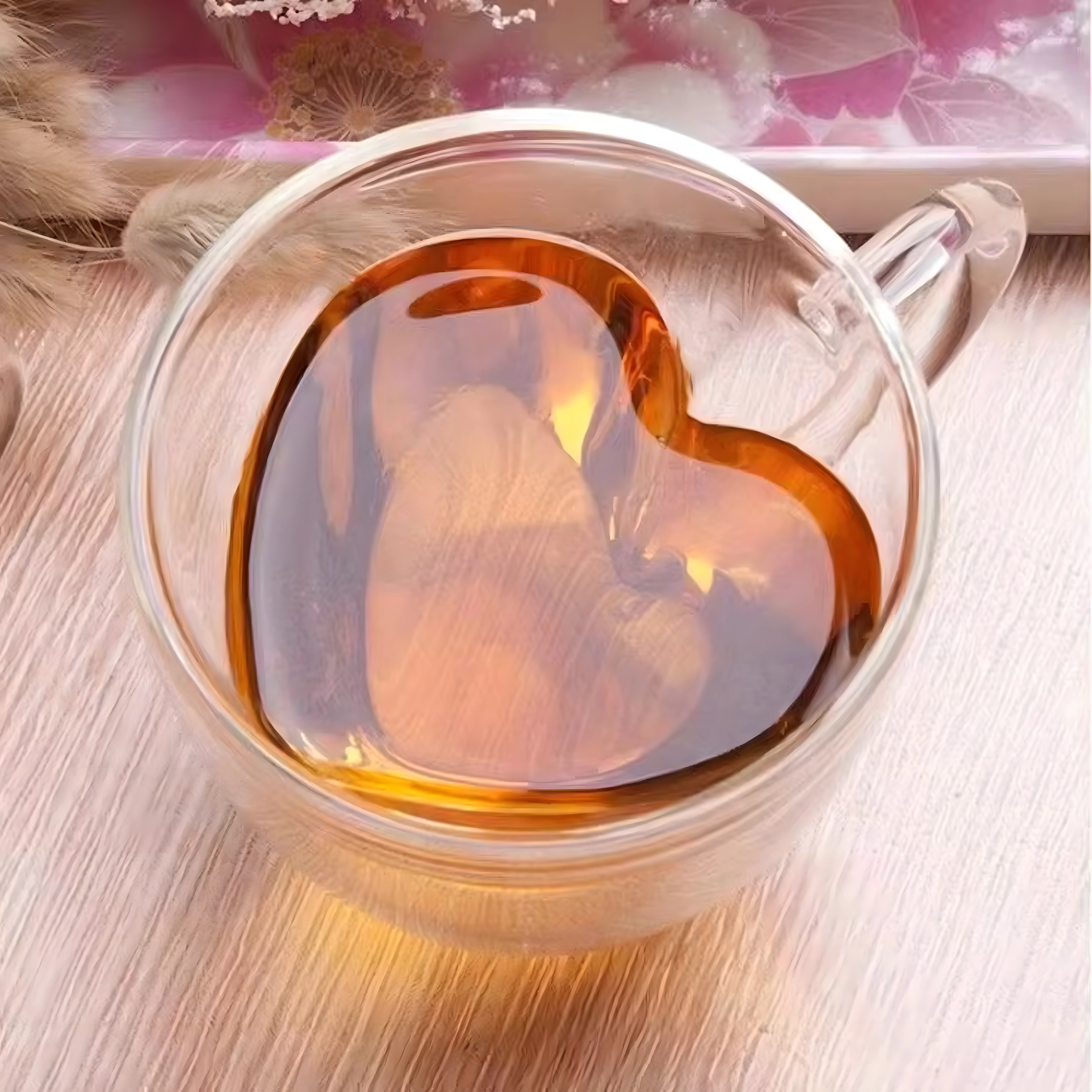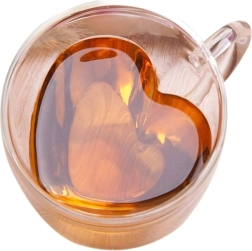 Elegancki szklany kubek w kształcie serca o pojemności 250 ml, wykonany z wytrzymałego szkła borokrzemowego z podwójną ścianką dla lepszej izolacji termicznej. Doskonały do gorącej kawy, aromatycznej herbaty, a także do zimnych napojów i deserów. Dzięki konstrukcji izolacyjnej napój dłużej utrzymuje temperaturę, podczas gdy zewnętrzna ścianka pozostaje przyjemnie chłodna i bezpieczna w trzymaniu.