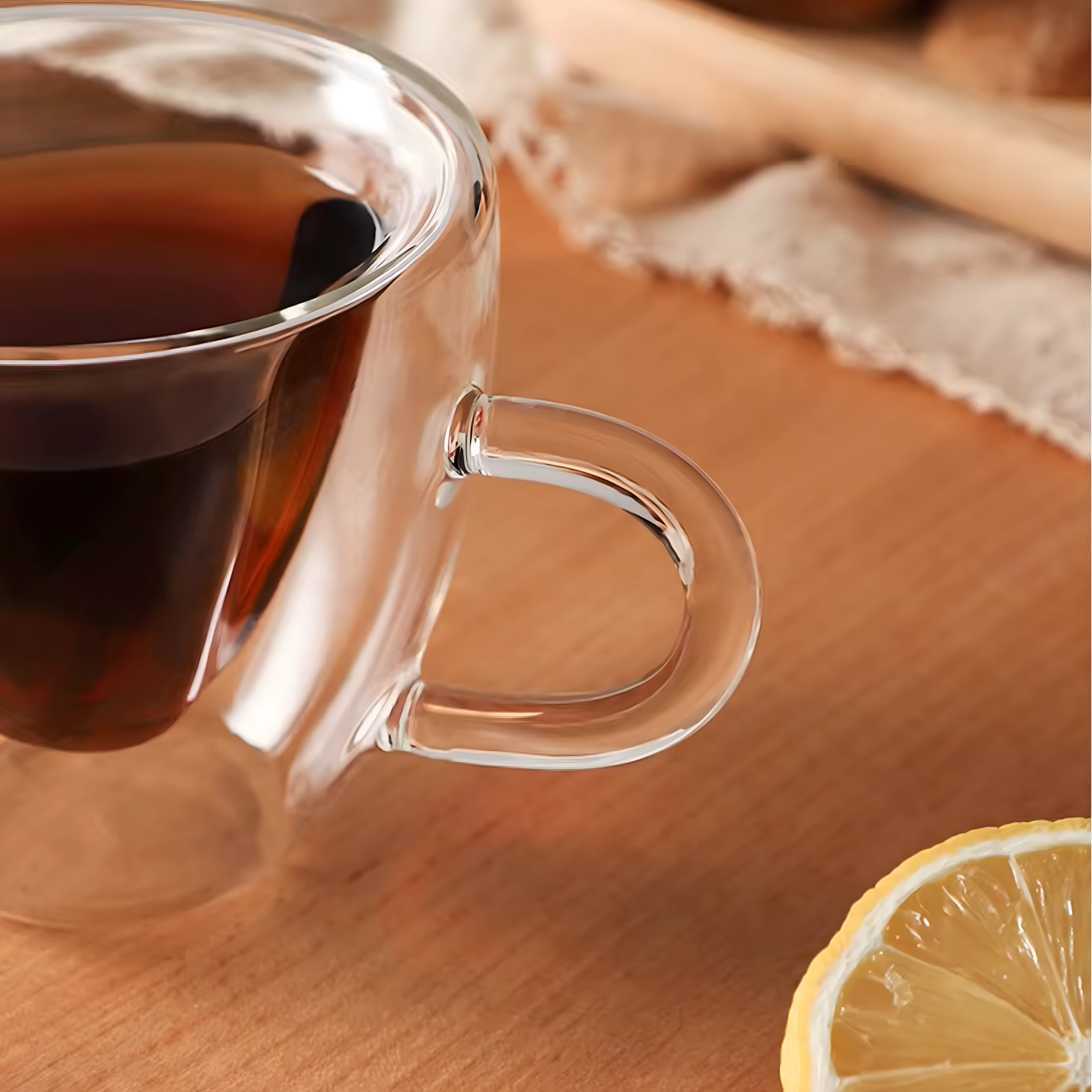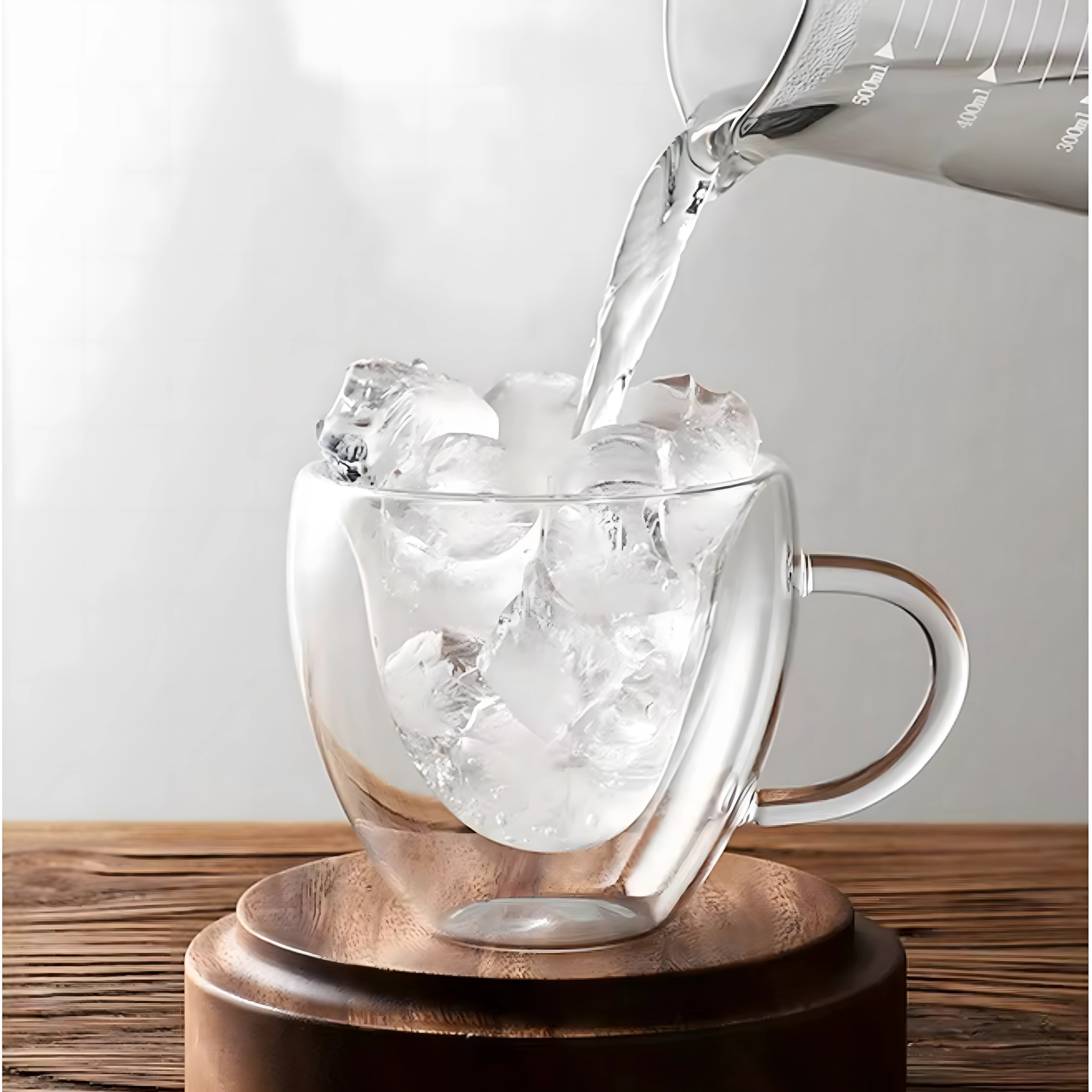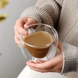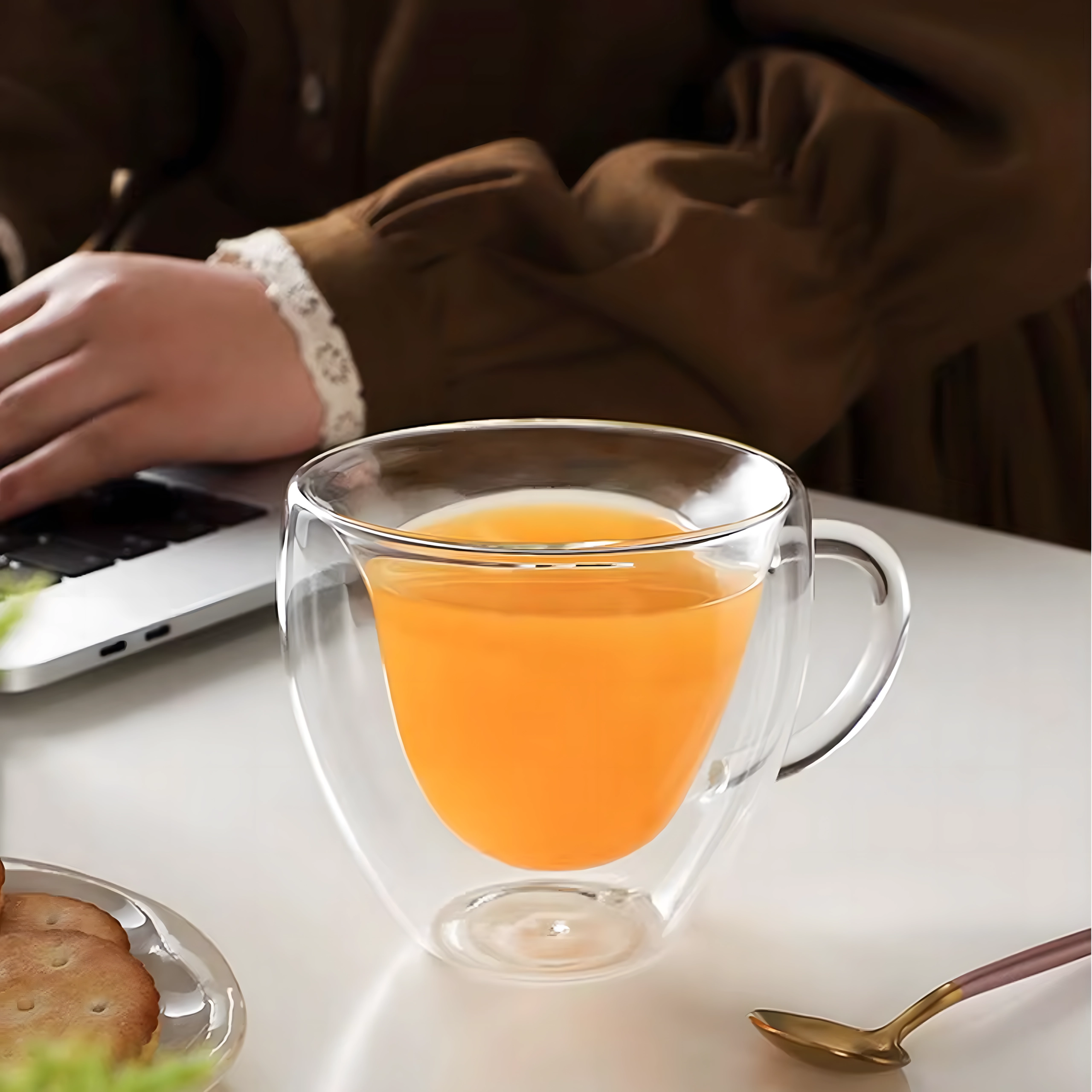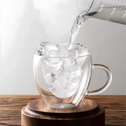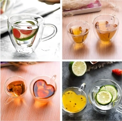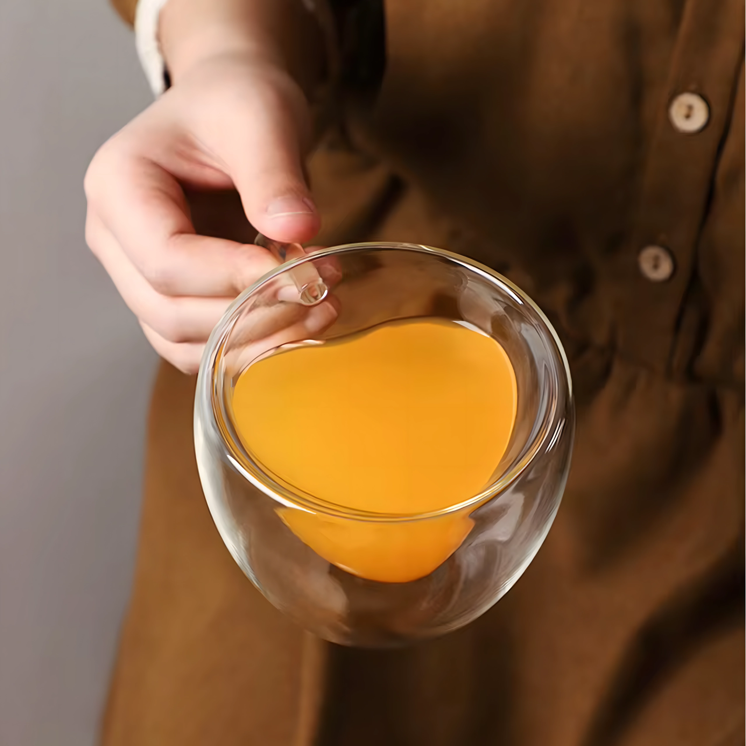 Elegancki szklany kubek w kształcie serca o pojemności 250 ml, wykonany z wytrzymałego szkła borokrzemowego z podwójną ścianką dla lepszej izolacji termicznej. Doskonały do gorącej kawy, aromatycznej herbaty, a także do zimnych napojów i deserów. Dzięki konstrukcji izolacyjnej napój dłużej utrzymuje temperaturę, podczas gdy zewnętrzna ścianka pozostaje przyjemnie chłodna i bezpieczna w trzymaniu.