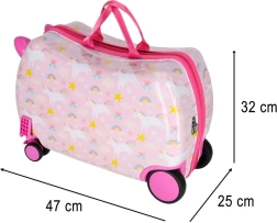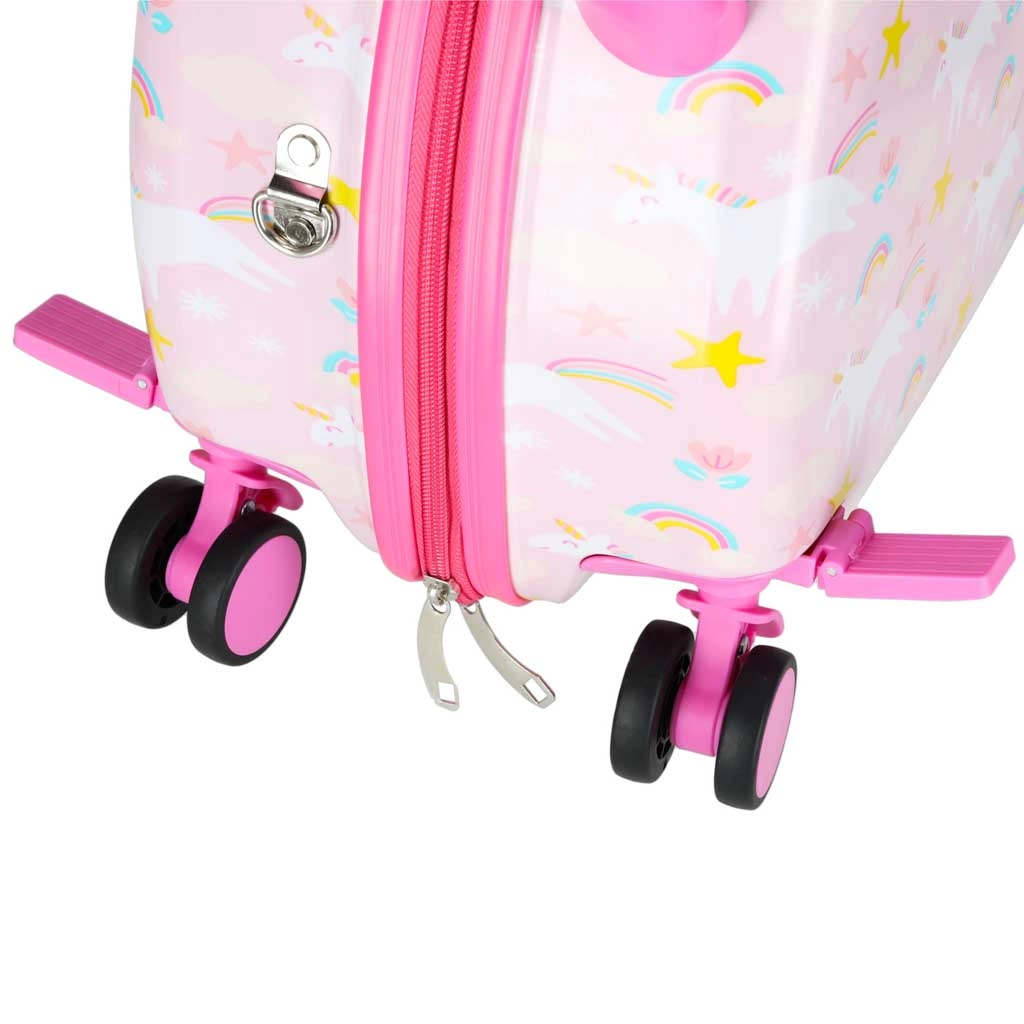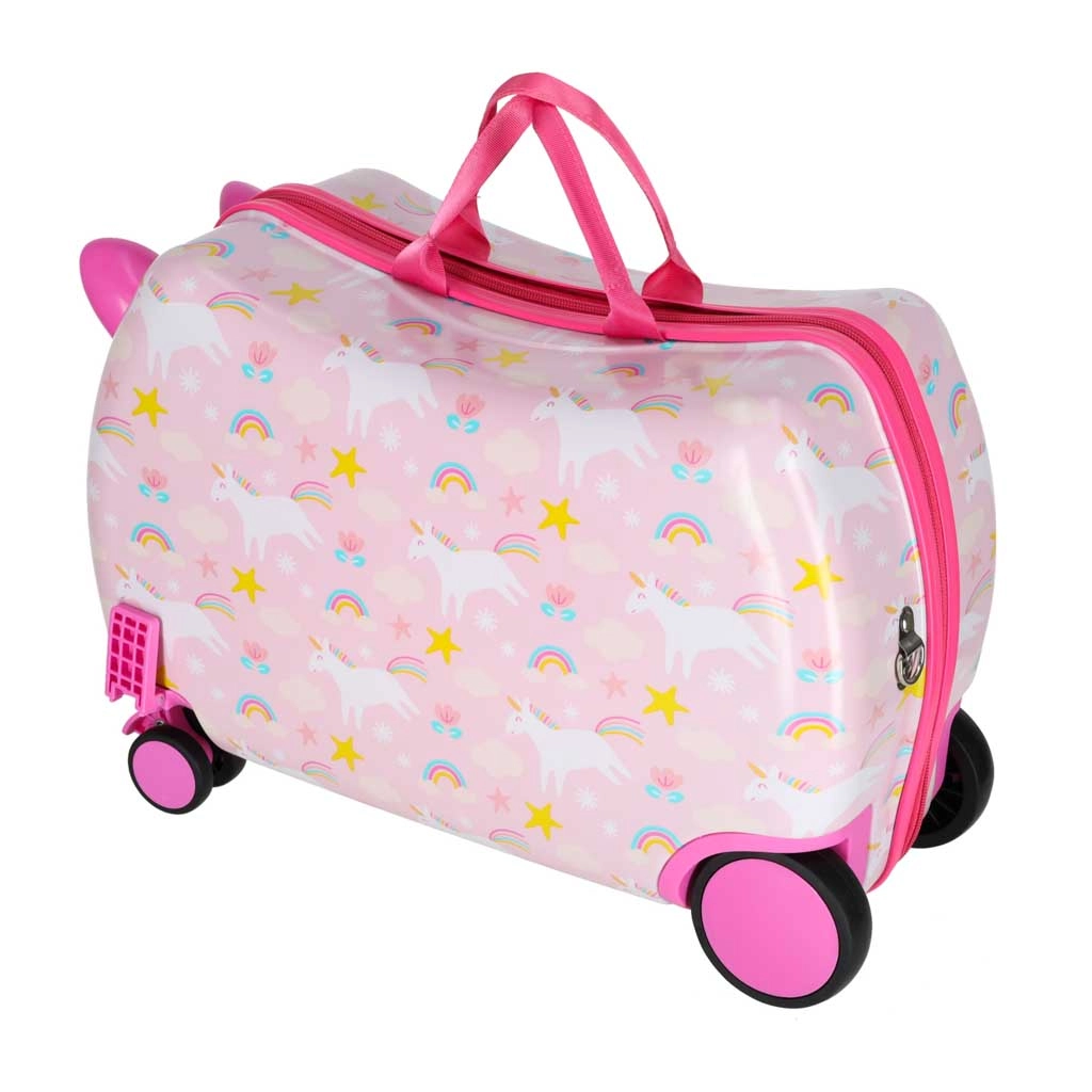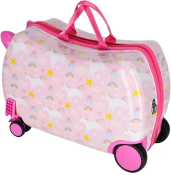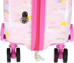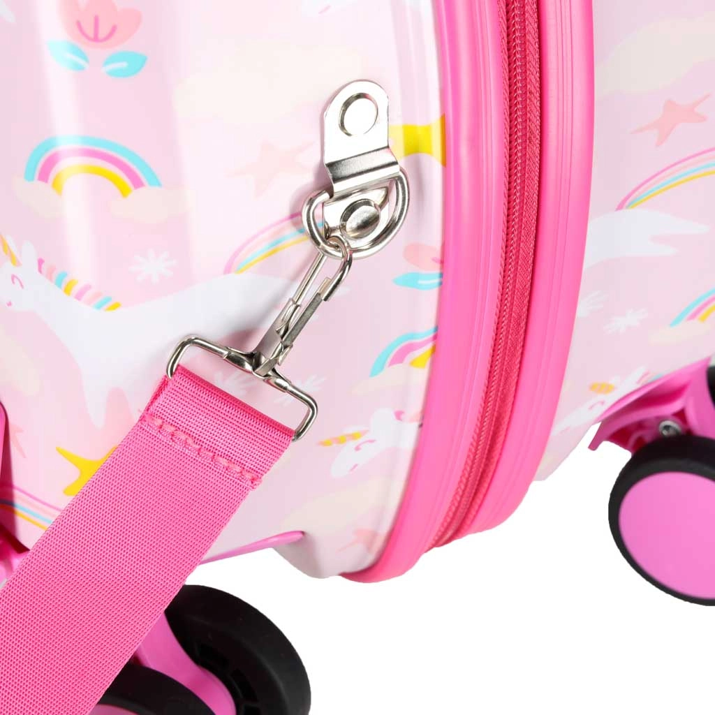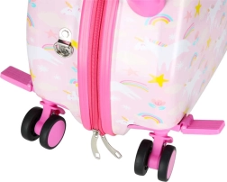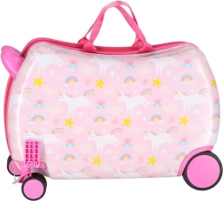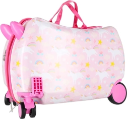 Podaruj dzieciom radosne i bezproblemowe podróżowanie. Ta dziecięca walizka na kółkach łączy wygodę, funkcjonalność i bajkowy design z jednorożcem. Dzięki wymiarom kabinowym świetnie sprawdzi się jako bagaż podręczny, a jej twarda skorupa chroni zawartość przed uderzeniami.