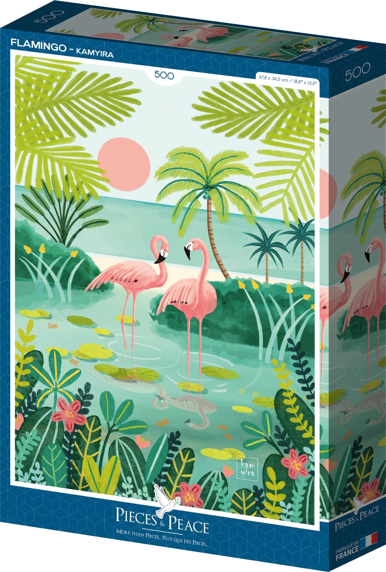 Zrelaksuj się przy pięknym motywie flamingów na wysokiej jakości puzzlach z 500 elementami. Dzięki precyzyjnemu wykrojowi i przyjemnemu w dotyku materiałowi układanka zapewnia idealne dopasowanie, komfortowe układanie oraz odpoczynek dla całej rodziny.