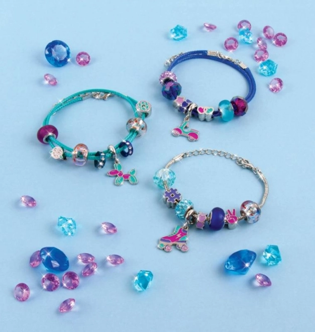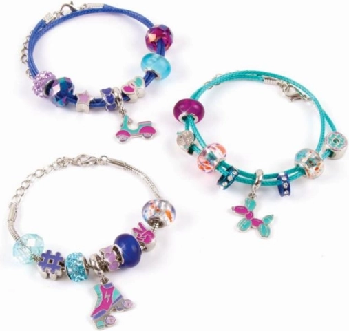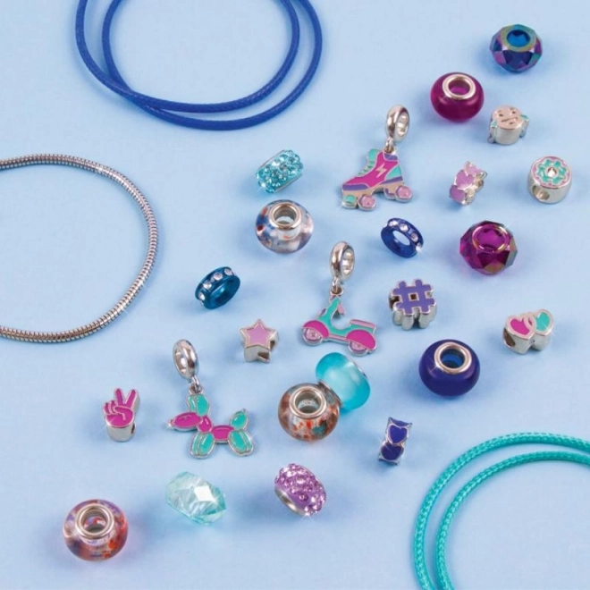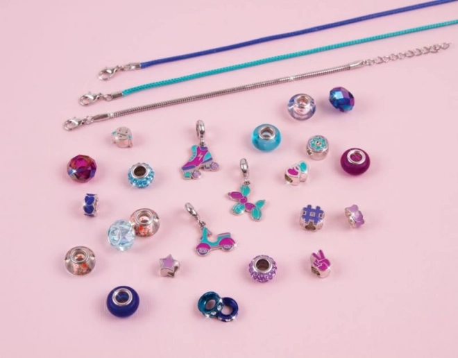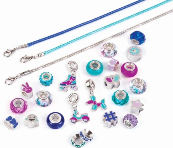 Mieszanka srebrnych, niebieskich i fioletowych koralików uzupełniona jest zabawnymi zawieszkami, dzięki którym stworzysz unikatową biżuterię skrojoną na miarę.