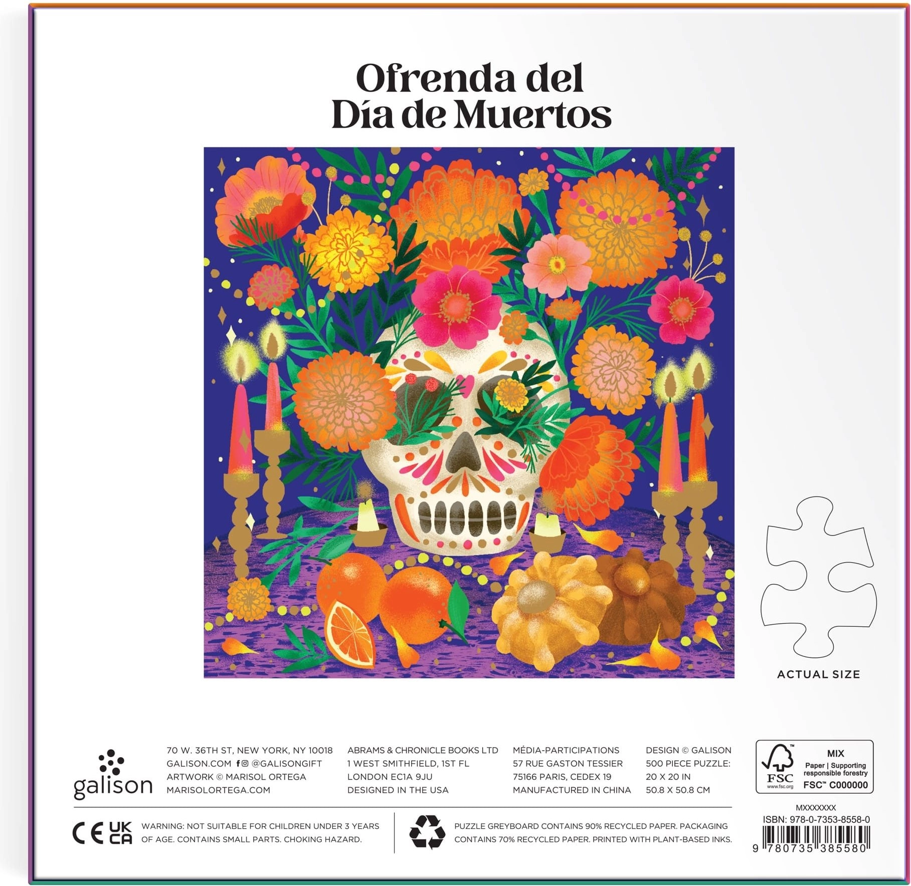 Ciesz się wyjątkową przyjemnością układania z kwadratowymi puzzlami z motywem Ołtarz na Dzień Zmarłych o 500 elementach. Elegancki metaliczny efekt podkreśla kolory i detale, a gotowy obraz ma wymiary 50,8 × 50,8 cm. W zestawie znajduje się plakat z wzorem ułatwiający układanie.