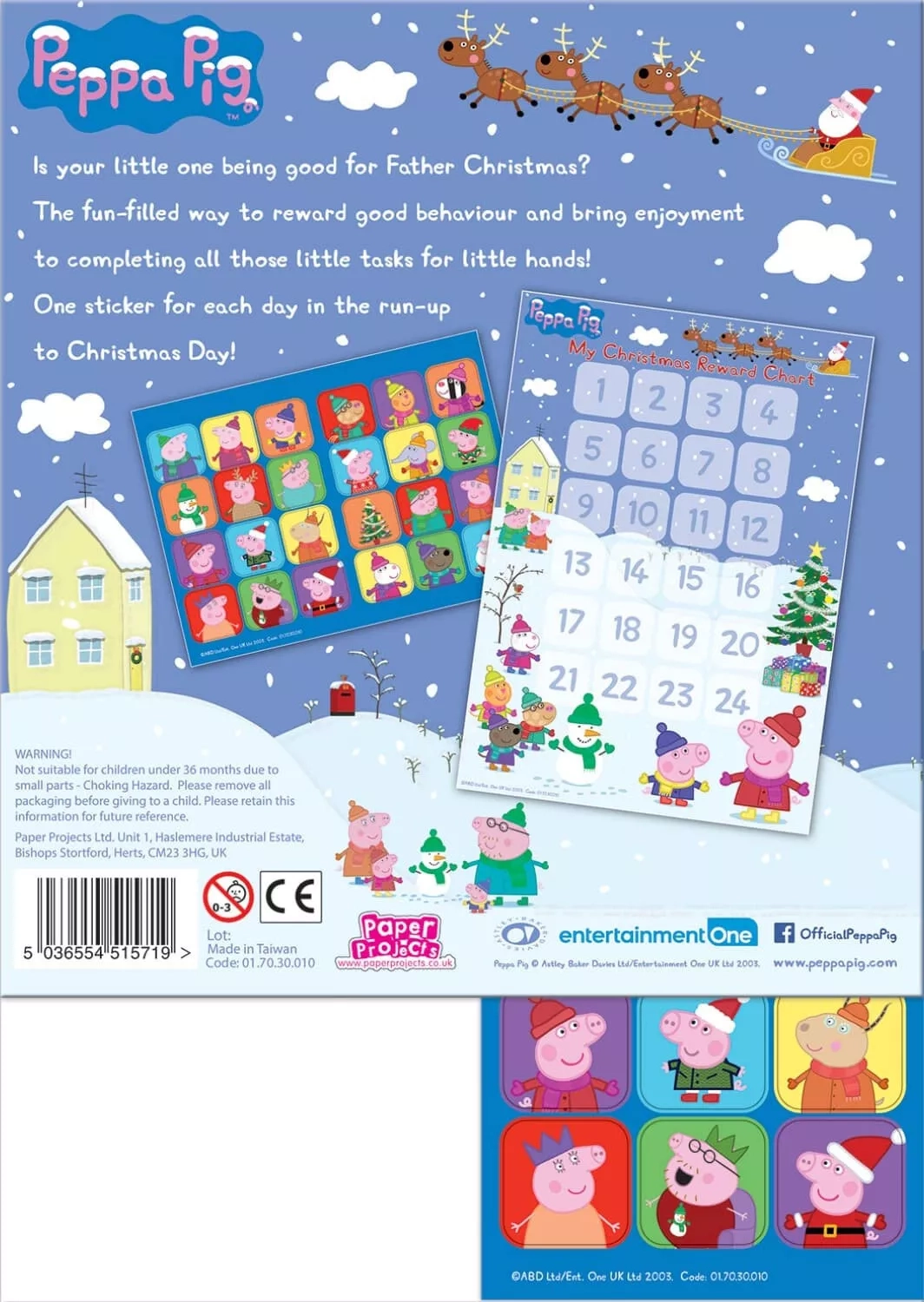 Rozjaśnij adwentowe dni papierowym kalendarzem Świnka Peppa. Za każdymi drzwiczkami kryje się nowa naklejka, która ucieszy małych fanów tego uwielbianego serialu. To prosty i bezpieczny sposób, by każdego dnia przypominać dzieciom o magii Świąt.