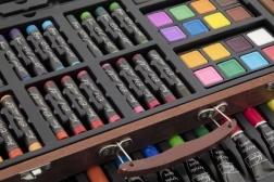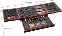 Kompletny zestaw plastyczny w eleganckiej drewnianej walizce dla początkujących i zaawansowanych artystów. Zawiera szeroki wybór akcesoriów do rysunku i malarstwa, aby Twoje pomysły ożyły. Znajdziesz w nim farby akrylowe, farby wodne, pastele suche i olejne, ołówki kolorowe i grafitowe, pędzle oraz inne niezbędniki – wszystko przejrzyście zorganizowane i łatwe do przenoszenia.