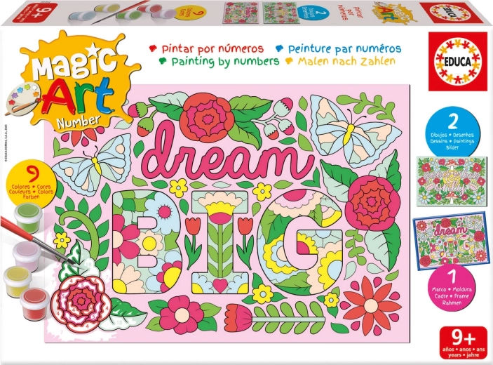 Odkryj radość tworzenia z zestawem Educa malowanie po numerach – kwiaty. Dzięki nadrukowanym segmentom i dołączonym farbom malowanie jest proste, zabawne i odpowiednie także dla początkujących. Aktywność rozwija koncentrację, koordynację oraz rozpoznawanie kolorów.
