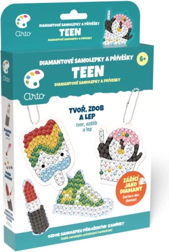 Zamień pomysły w lśniące dekoracje! Kreatywny zestaw ARTO pozwala dzieciom z łatwością tworzyć oryginalne breloczki i naklejki. Wystarczy postępować według wzoru, przyklejać drobne „diamenty” w wyznaczone miejsca i w mgnieniu oka powstaną olśniewające prace, które ozdobią plecak, piórnik lub posłużą jako miły prezent.