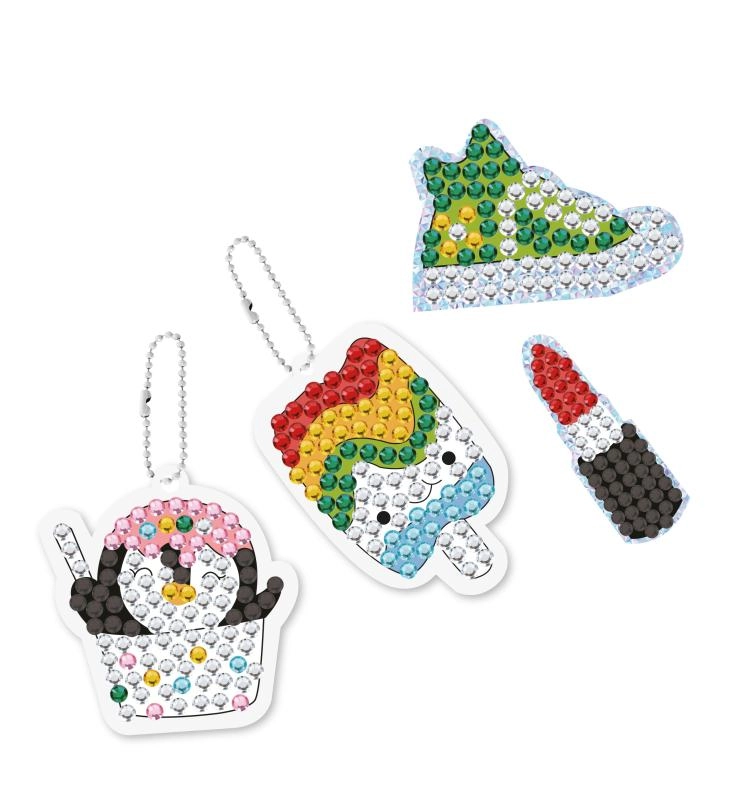 Gotowe breloczki łatwo przypniesz do suwaka, kluczy lub plecaka, a naklejki ozdobią zeszyty, pamiętniki i akcesoria. Idealny prezent dla wszystkich, którzy kochają blask i tworzenie.