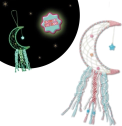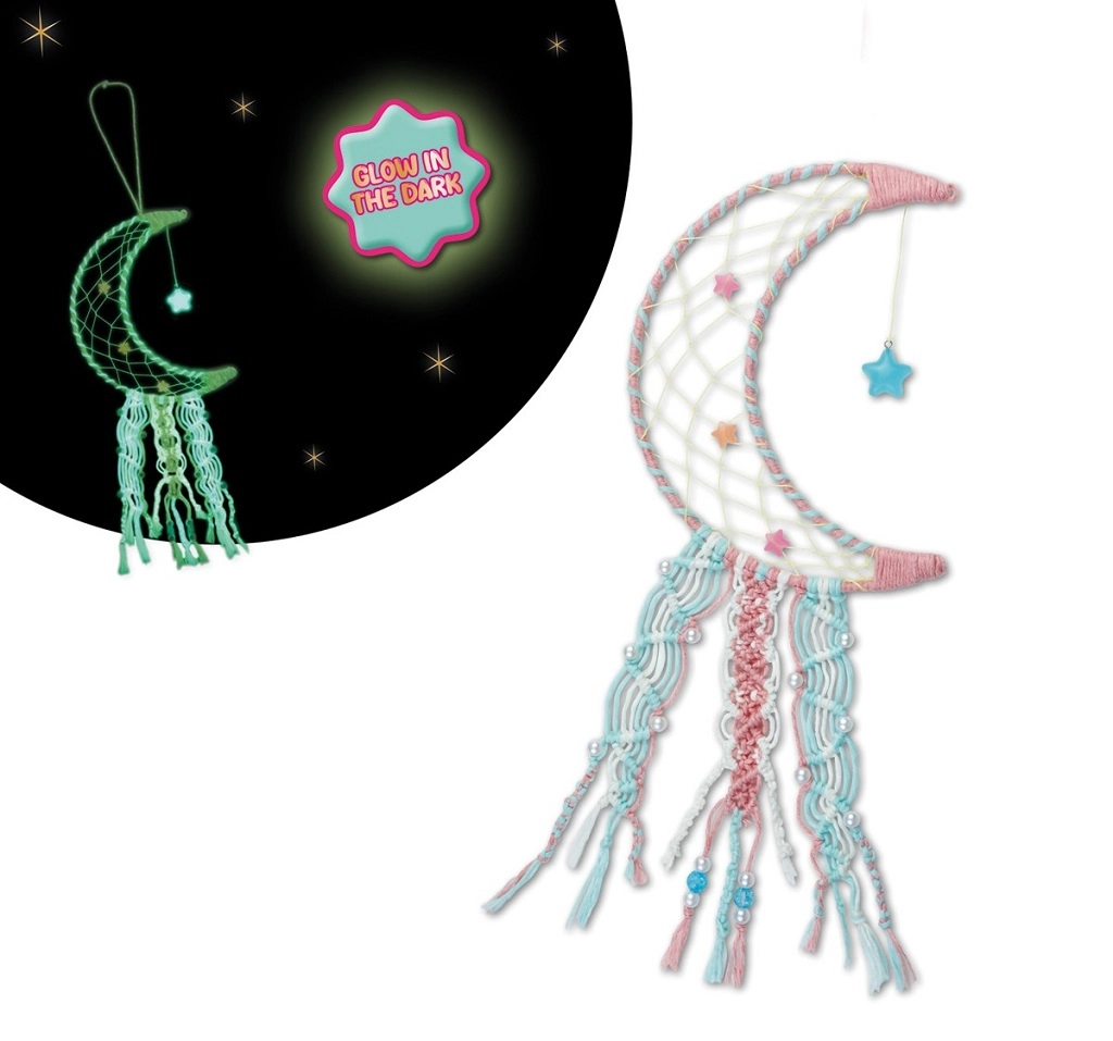 Dzięki temu oryginalnemu zestawowi dzieci łatwo stworzą własny łapacz snów w kształcie księżyca. Po naświetleniu delikatnie rozświetla przestrzeń, dlatego świetnie sprawdzi się nad łóżkiem, przy oknie lub na ścianie, zamieniając pokój w przytulne miejsce.