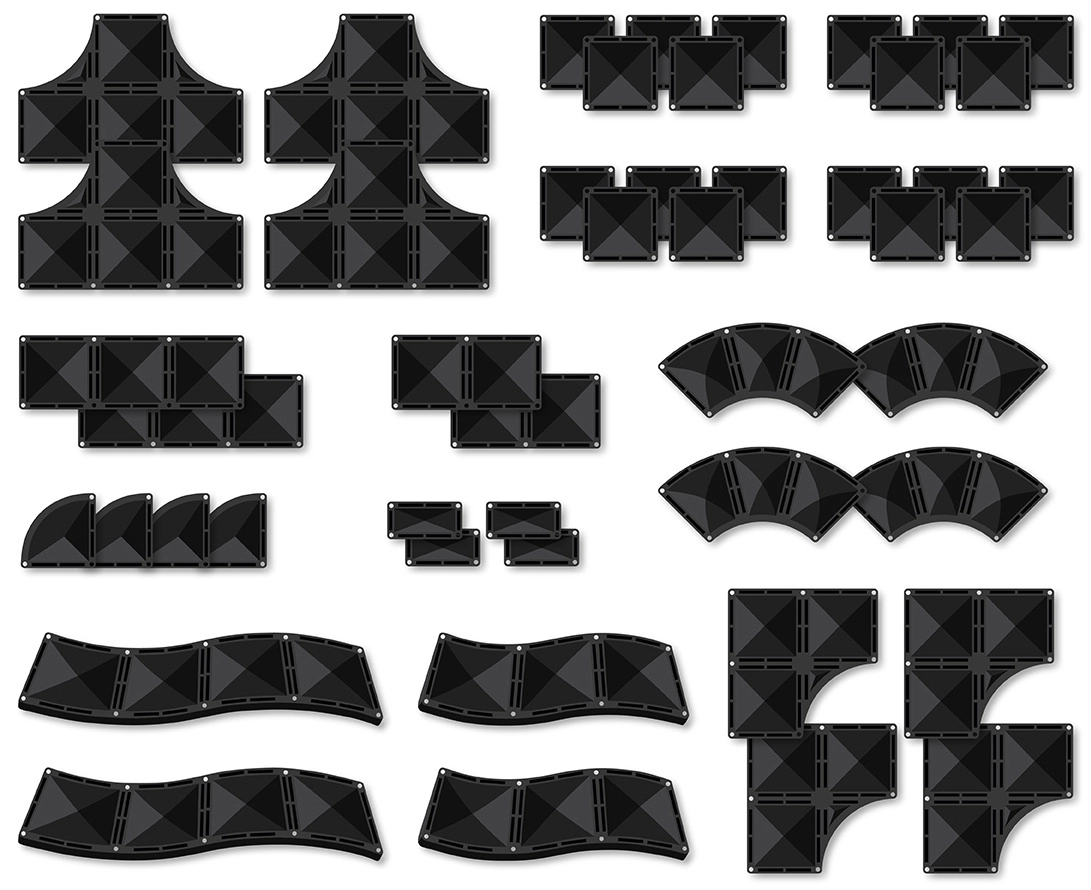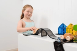 Łącz rampy, zakręty, elementy T oraz skrzyżowania w dowolne układy. Magnetyczne połączenia są szybkie, stabilne i dają satysfakcjonujące „klik”.