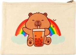 - Oryginalny design: kapibara z bubble tea, tęcza i chmurki
