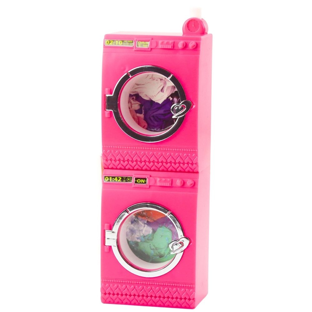Stylowa różowa pralnia dla lalek o wysokości ok. 29 cm zapewnia realistyczną zabawę w dom. W zestawie znajdują się pralka z obracającym się bębnem, suszarka, wieszak stojący z wieszakami na ubrania, kosz na pranie oraz akcesoria takie jak „detergenty” i żelazko. Wspiera kreatywność, motorykę małą i zabawy w odgrywanie ról.