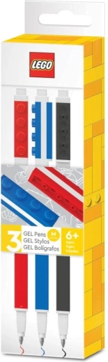 Stylowy zestaw trzech długopisów żelowych LEGO w kolorach czerwonym, niebieskim i czarnym do codziennego pisania oraz twórczej pracy. Długopisy mają wygodny uchwyt z elementami LEGO i są kompatybilne z klockami LEGO, więc można je łatwo personalizować. Idealne do szkoły, biura i jako oryginalny prezent dla fanów LEGO. Płynne pisanie żelowe, średnia końcówka, możliwość przypięcia do akcesoriów LEGO, wiek 6+.