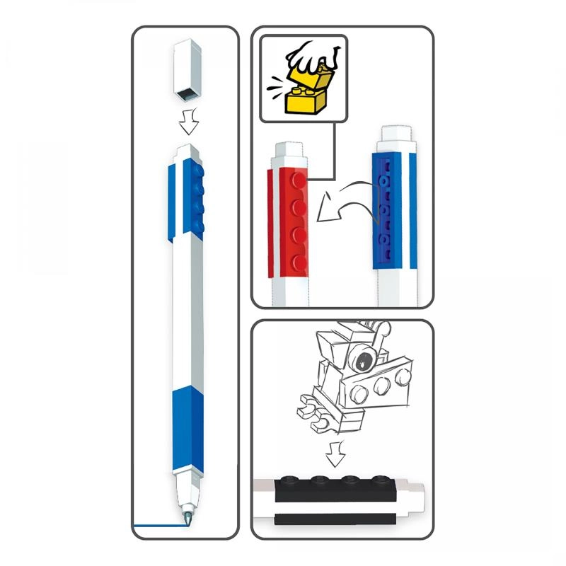 - 3× długopis żelowy, 2× płytka LEGO do łączenia