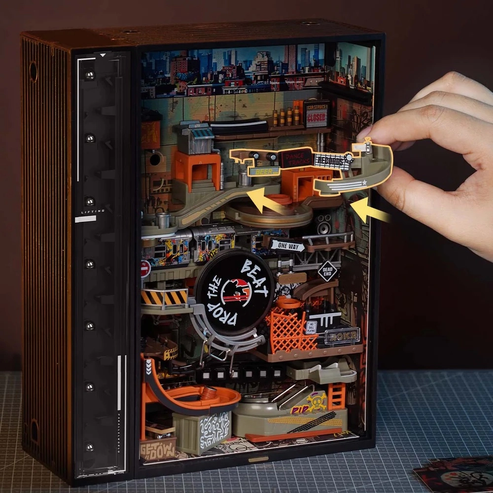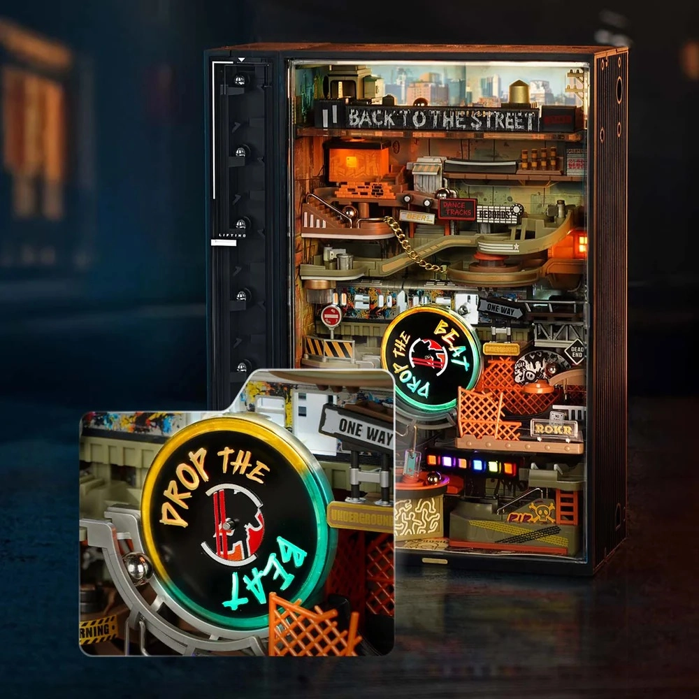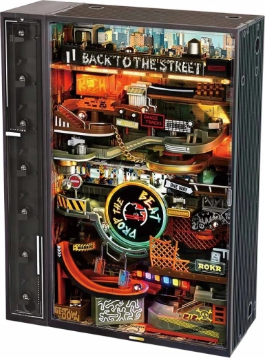 Miniaturowa panorama pulsującej hip‑hopowej ulicy zapewnia płynny ruch kulek na torze o długości 233 cm, podkreślony dynamicznym neonowym oświetleniem LED. Dzięki wydajnemu silnikowi o wysokim momencie obrotowym kulki niezawodnie wracają za pomocą automatycznej windy, więc możesz cieszyć się nieprzerwaną widowiskową pracą.