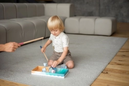 Solidne drewniane pręty z magnetyczną końcówką umożliwiają łowienie rybek w duecie oraz rozwijają współpracę zespołową i koordynację.