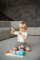 Zestaw wyprodukowany w Europie z wysokiej jakości klonu i buku z użyciem nietoksycznych, wodnych farb. Produkt spełnia normę EN 71 i posiada certyfikat TÜV. Idealny jako zabawka edukacyjna do rozwoju senzomotoryki, kreatywności i wyobraźni.