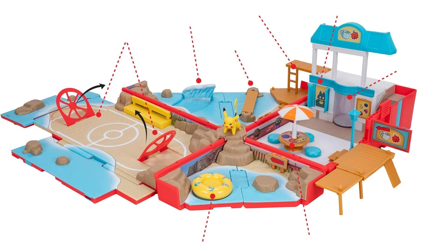 Oficjalnie licencjonowany produkt od Jazwares zachwyca dopracowaniem detali i kompatybilnością z innymi bojowymi figurkami Pokémon. Dzieci mogą tworzyć własne historie z ulubionym bohaterem PIKACHU i odkrywać nowe scenki na plaży.
