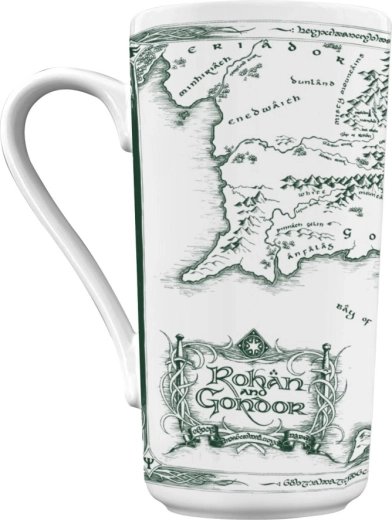 Ciesz się ulubionym napojem z ikonicznym motywem ze świata Władcy Pierścieni. Duży biały ceramiczny kubek z mapą Śródziemia zachwyca czystym designem, przyjemnym kształtem i pojemnością wystarczającą na solidną porcję kawy, herbaty lub gorącej czekolady.