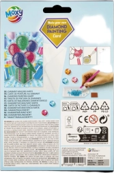 - szablon/obraz, różne rodzaje diamentów/kamyczków, długopis aplikacyjny, klejący kwadracik, tacka, koperta prezentowa