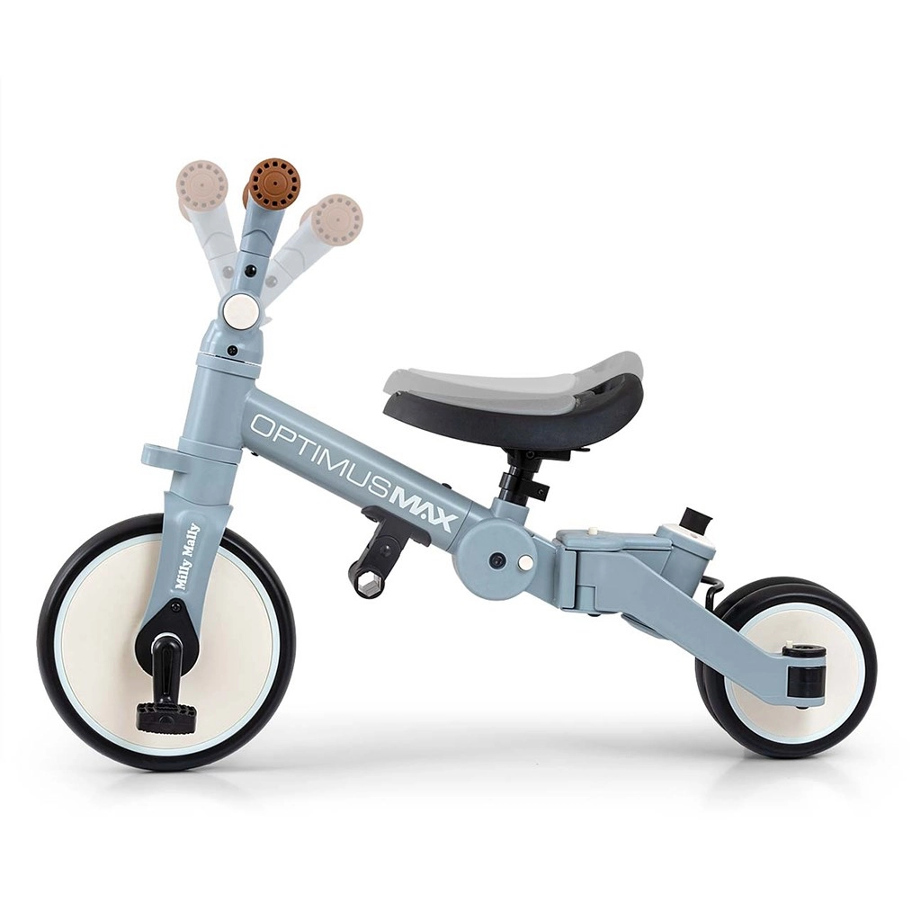 KINDERKRAFT OPTIMUS MAX to przemyślane rozwiązanie na pierwsze przejażdżki – od wsparcia rodzica po samodzielną jazdę. Wytrzymała stalowa rama, piankowe opony i profilowane siodełko z 3-punktowymi odblaskowymi pasami zapewniają komfort i bezpieczeństwo. Ogranicznik skrętu kierownicy zapobiega nadmiernemu skręceniu i wywróceniu, a składane tylne kółka ułatwiają zmianę trybu.
