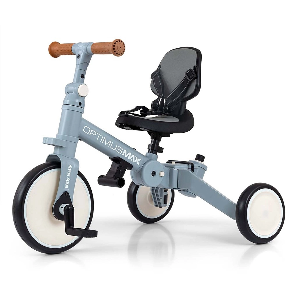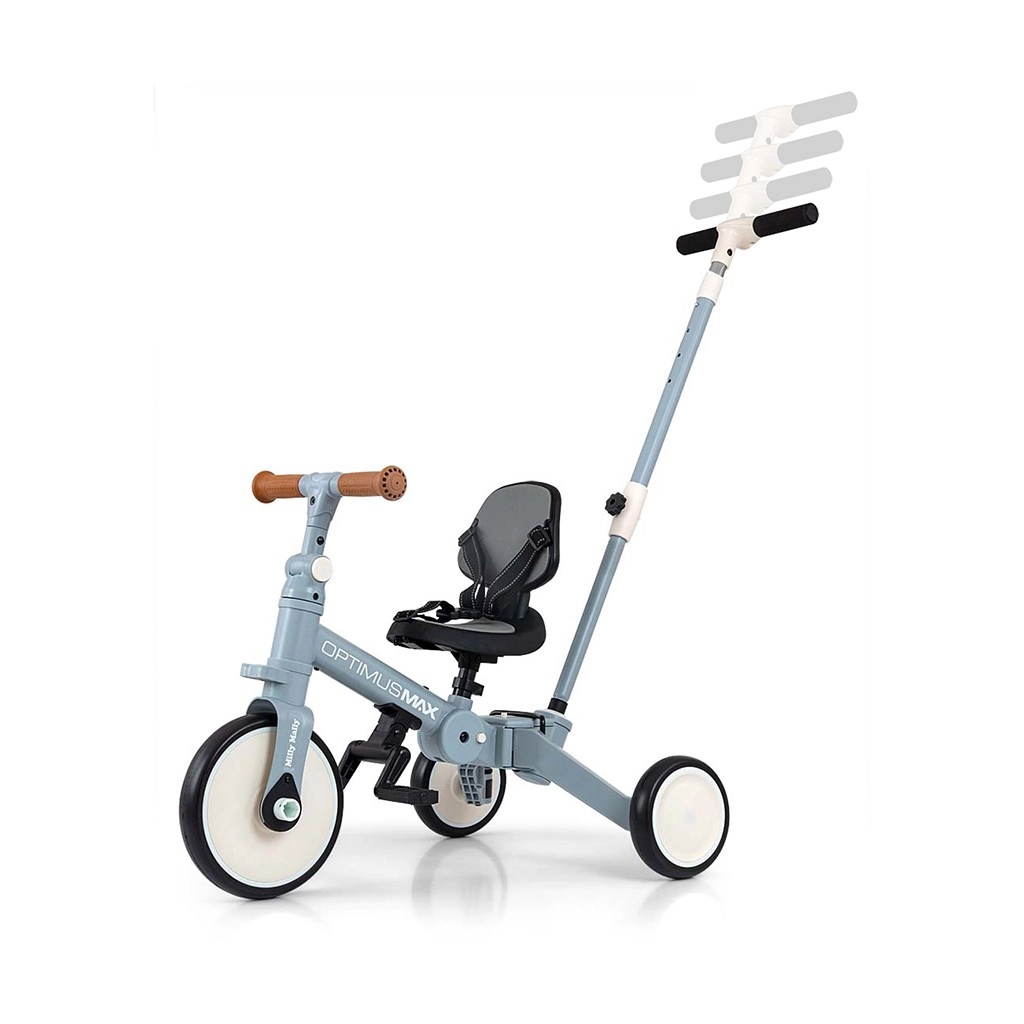 Uniwersalny dziecięcy trójkołowiec i jeździk 5w1 KINDERKRAFT OPTIMUS MAX rośnie razem z dzieckiem od 12 miesięcy. Oferuje stabilną, trójkołową konstrukcję, drążek prowadzący dla rodzica z 4-stopniową regulacją wysokości, regulowane siodełko oraz piankowe koła dla komfortowej jazdy. Dzięki szybkiej zmianie trybów pomaga rozwijać motorykę, równowagę i pierwsze pedałowanie – bezpiecznie i z frajdą.