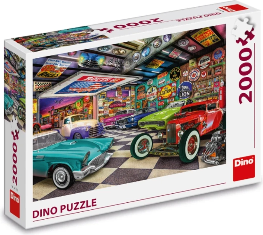 Te wysokiej jakości kartonowe puzzle marki Dino przedstawiają szczegółową scenę z retro garażu, w którym dominują klasyczne samochody i autentyczne reklamy z epoki. Wysoka liczba elementów gwarantuje intensywne i wciągające doświadczenie układania, podczas którego poćwiczysz koncentrację, cierpliwość i spostrzegawczość.