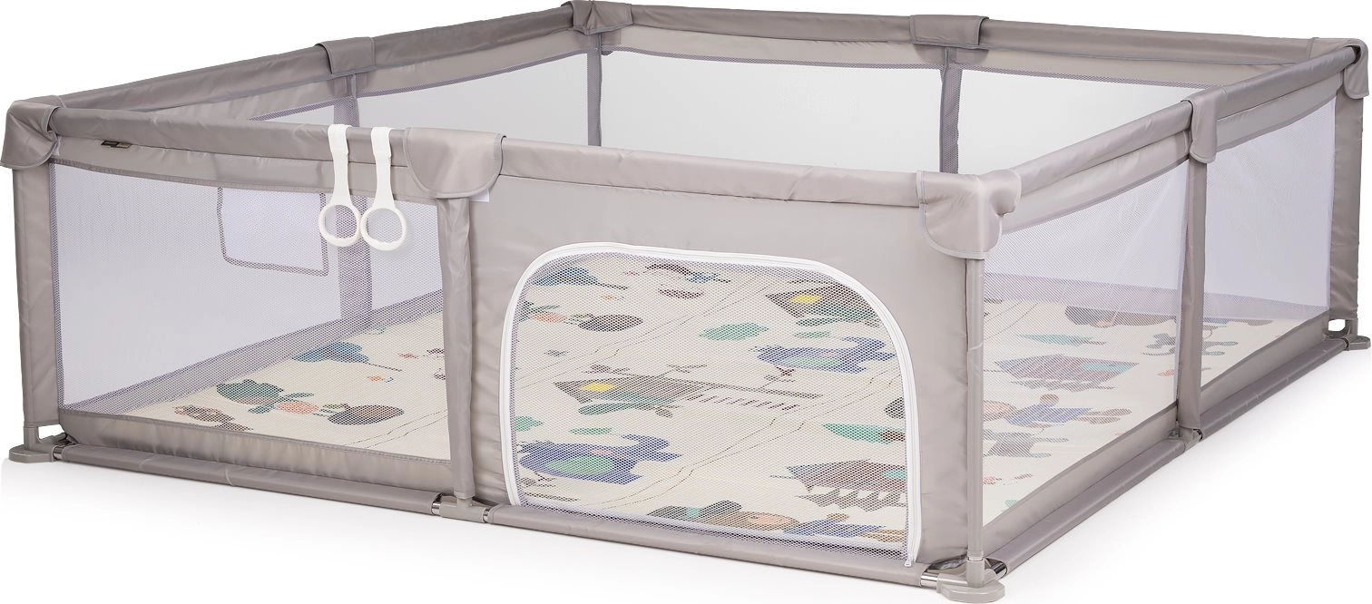 Dziecko ma wystarczająco miejsca do raczkowania, zabawy i stawiania pierwszych kroczków. Panele z siatki zapewniają optymalny przepływ powietrza i nieprzerwany kontakt wzrokowy.