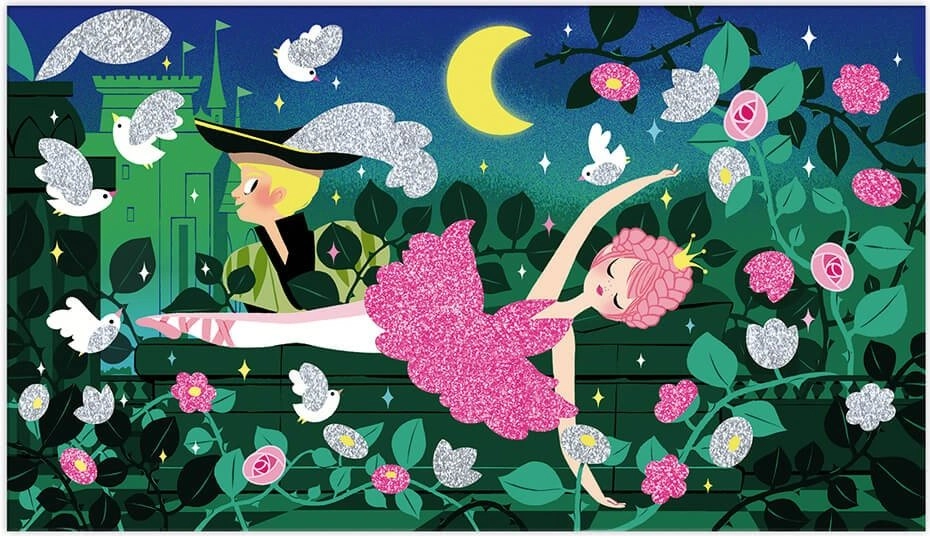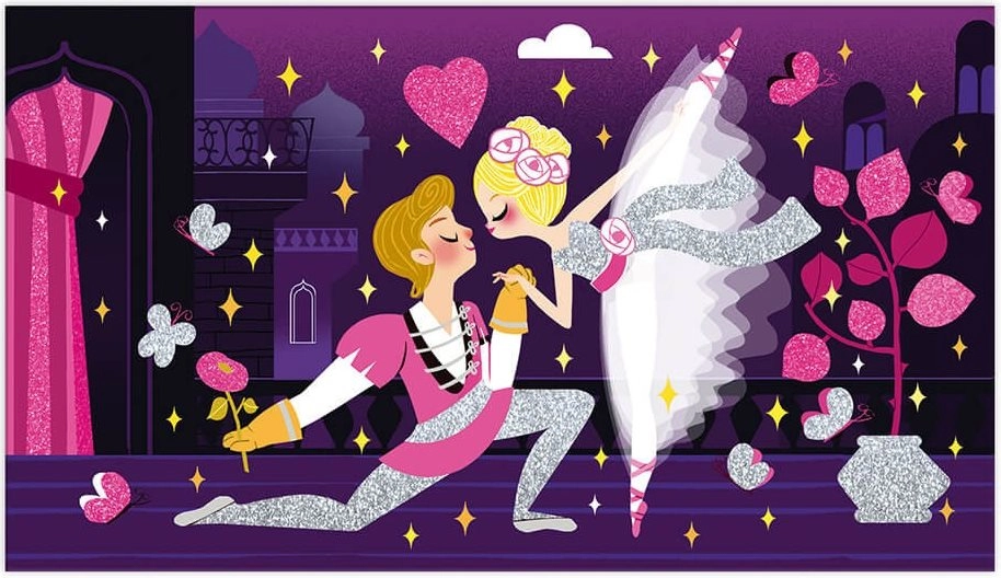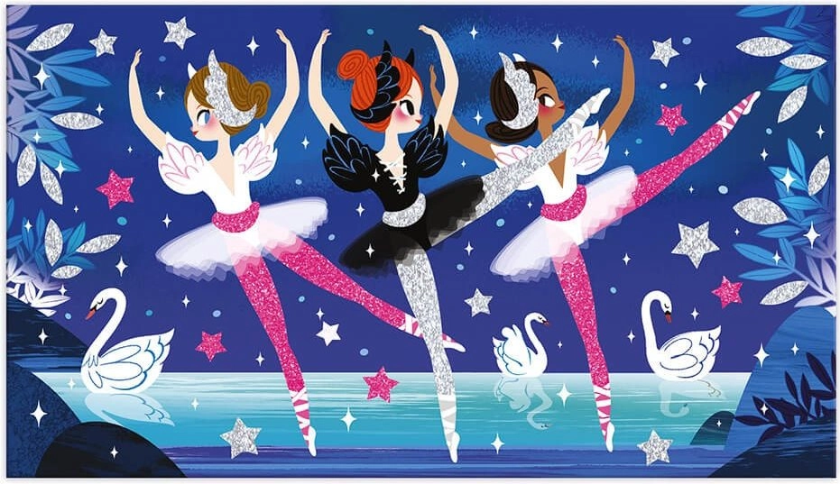 Odkryj zabawny świat piaskowania z motywem baletek. Dzieci za pomocą szpatułki usuwają zaznaczone samoprzylepne części na obrazku, wysypują kolorowy brokatowy piasek i w kilka chwil tworzą efektowne dekoracje. Nadmiar piasku można łatwo przesypać z powrotem do tuby, więc tworzenie jest czyste i powtarzalne.