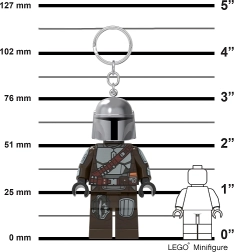 Świecący brelok LEGO Mandalorian to stylowy i funkcjonalny dodatek do codziennego noszenia. Ikoniczna minifigurka z detalicznym pancerzem i srebrnym hełmem zapewnia oryginalny wygląd, a zintegrowane światło LED ułatwia trafienie do dziurki od klucza lub znalezienie rzeczy w ciemności.