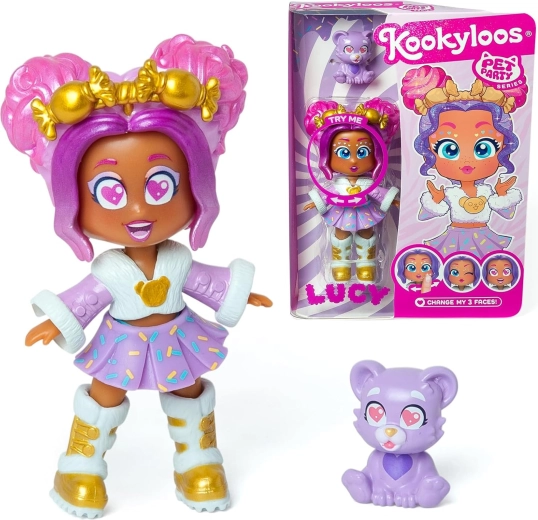 Laleczka KookyLoos Lucy z kolekcji Pet Party łączy wyrazisty imprezowy styl, dopracowane ubranka i akcesoria z możliwością szybkiej zmiany mimiki. Wystarczy obrócić główkę, aby uzyskać trzy różne miny, które dodają zabawie emocji i frajdy. W opakowaniu nie brakuje też jej wiernego zwierzaka – misia, z którym stworzysz własne historie.