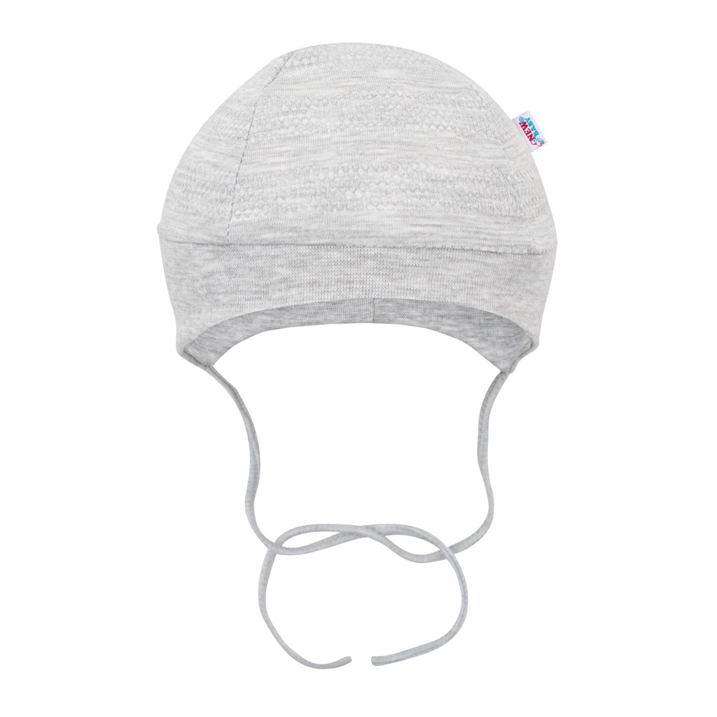 Gładki kardigan na napy oraz czapeczka zakrywająca uszka, wiązana na troczki, zapewnią maluszkowi przyjemne ciepło i ochronę.