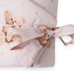 Rożek New Baby Love Teddy wykonany jest z wysokiej jakości 100% bawełny i wypełniony antyalergicznym włóknem poliestrowym. Daje dziecku poczucie bezpieczeństwa, sprzyja spokojniejszemu snu oraz ułatwia noszenie i karmienie. Uroczy motyw misia cieszy oko i doskonale uzupełni wyprawkę dla noworodka.