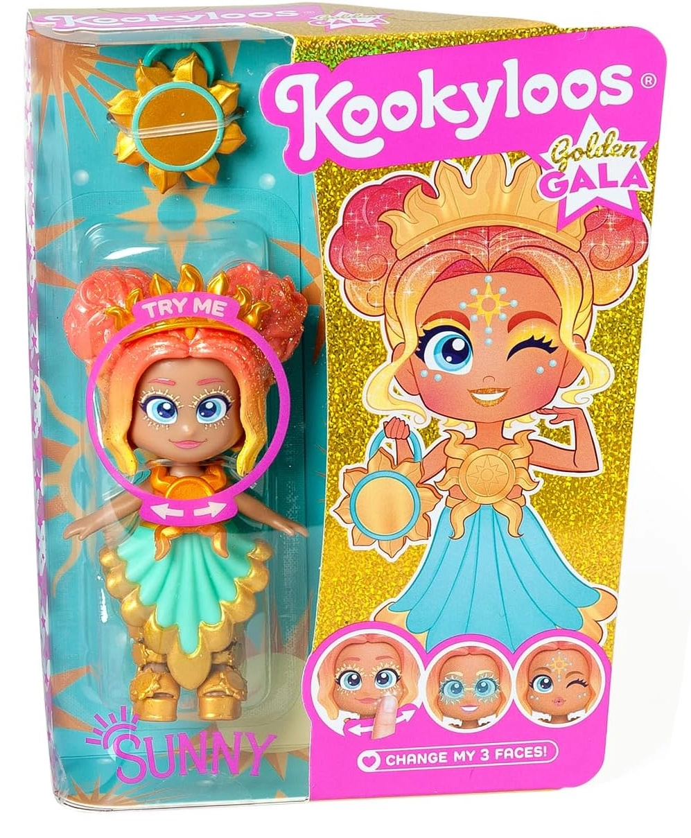 Figurka KookyLoos Sunny Golden Gala łączy modny wygląd z zabawną ekspresją. Obracając główkę, łatwo zmienisz 3 różne wyrazy twarzy, dzięki czemu dzieci zyskują jeszcze więcej zabawy i możliwości tworzenia historii. Elegancka sukienka, fryzura i dodatki utrzymane są w stylu uroczystej gali.